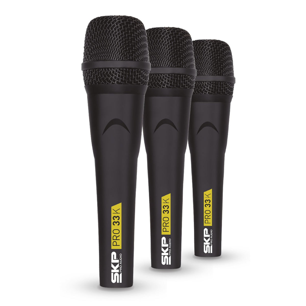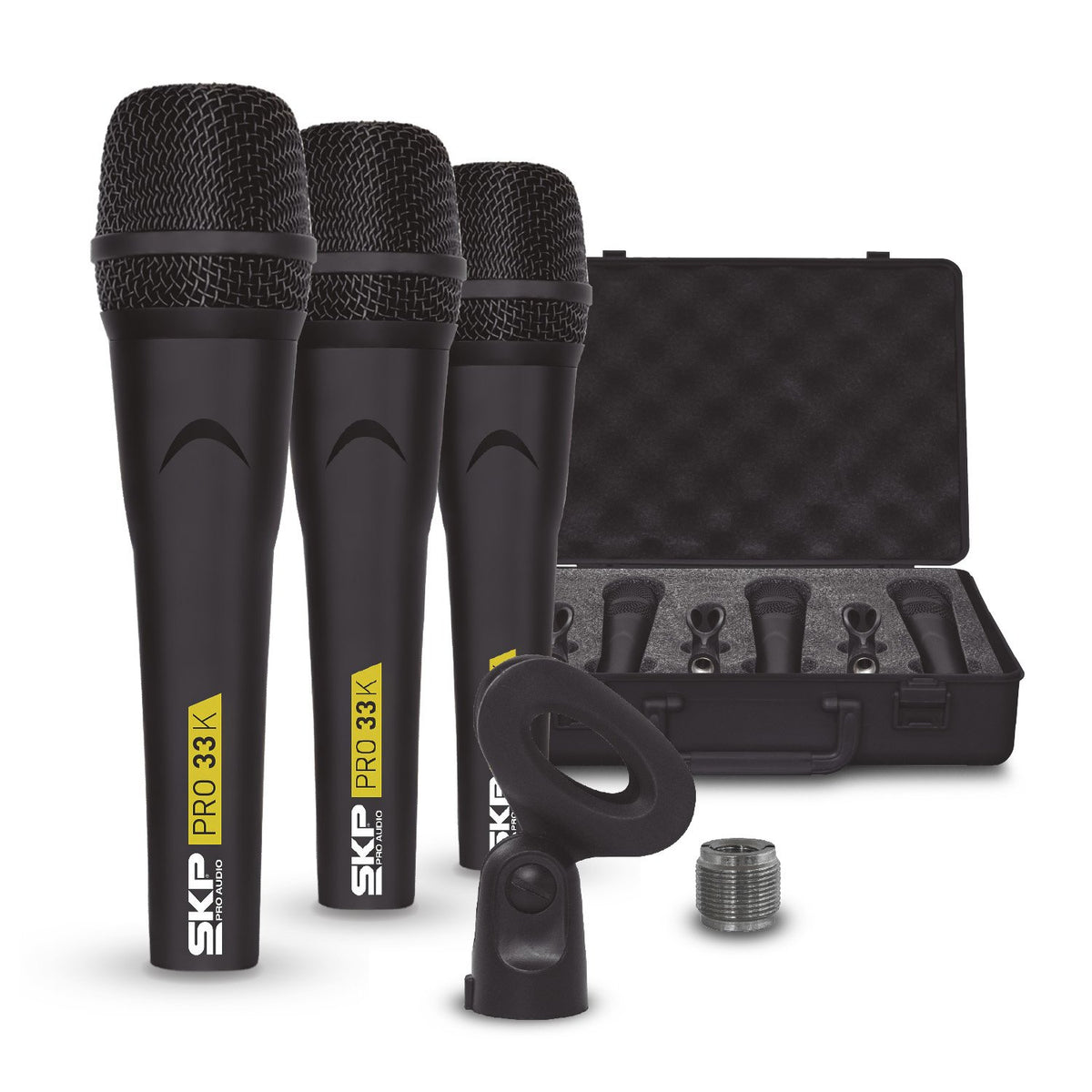 Skp Pro Audio Microphone For Singing, Concerts, Studio And Events Professional Pro 33K Dynamic Cardioid 3 Microphones Kit Xl