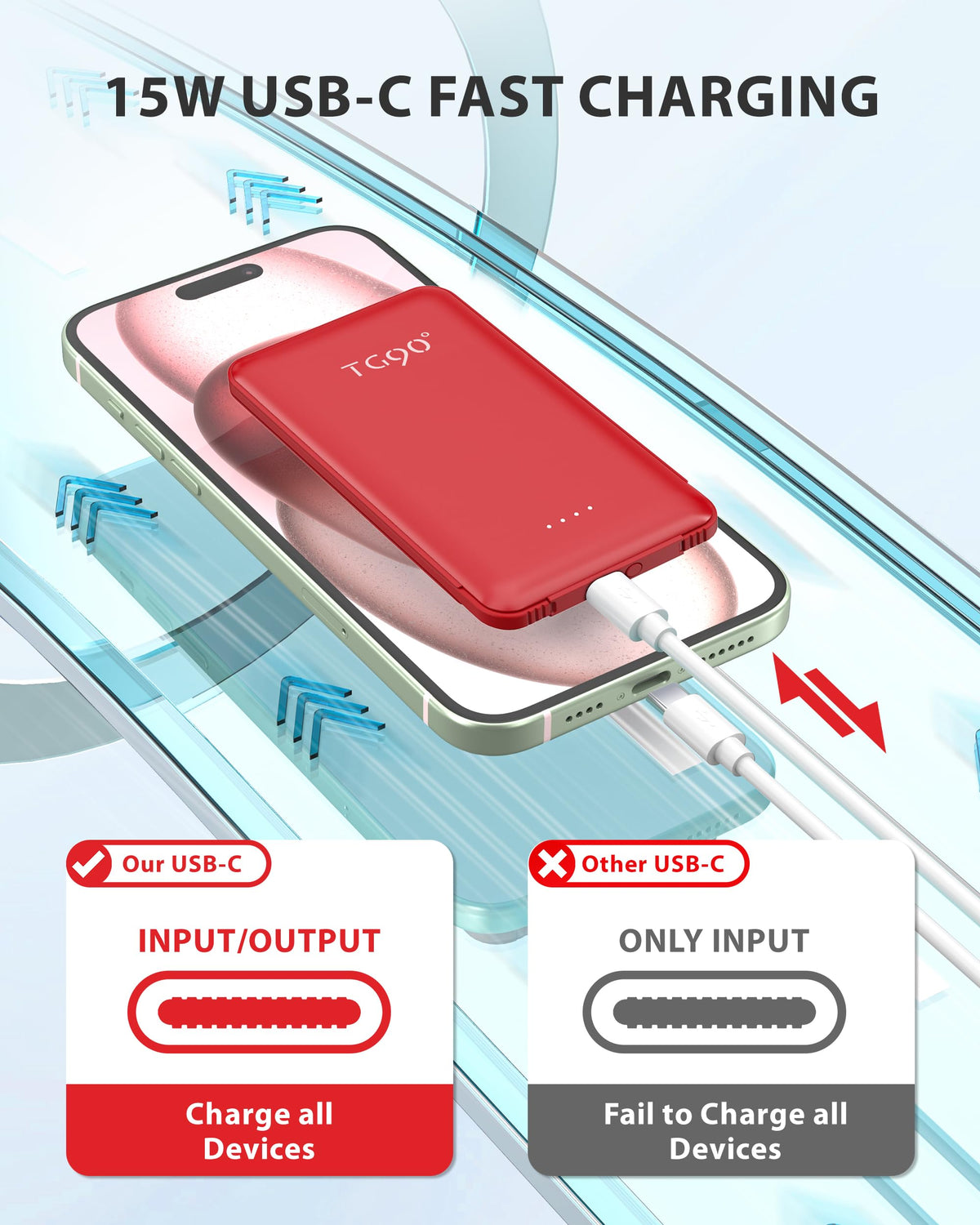Tg90 5000Mah Portable Power Bank Battery Charger For Cell Phones The Built In Type C Cable And Other Cables That Support Fast Charging All Your Smart Phones. Tested By Our Own Manufacturer To Provide High Quality Power Bank Portable Charger For Our Customers. Portable Handheld Size With High Capacity 5000Mah To Make It A Better Cell Phone Battery Backup While Traveling. Intelligent Safety Protection: Supports Over-Charged, Over-Discharged, Over-Voltage, Over-Current And Short Circuit Protection. Automatic Shutdown If A Short Circuit Or Overload Output Occurred While Unit Is Charging. Widely Used For All Usb Charging Port Compatible Devices. Great Portable Battery Charger Compatible With Iphone 16 Pro, 16,15 Pro, 15,14 Pro, 14,13 Pro, 13, 12 Pro, 12, 12 Mini, 11 Pro Max, 11 Pro, 11, Xs Max, Xs, X, 8 Plus, 8, Compatible With Samsung Galaxy Android Phones, Smart Devices And So On. With A Super Mini Model With Dimensions Of 4.4 X 2.7 X 0.65 Inches And 0.29 Pounds, This Power Bank, Size Of A Standard Deck Of Cards, Slips Your Pocket More Smoothly. A Good Choice As Travel Accessories. Notice: The Portable Power Bank Is Not Full Charged When It Is Used For The First Time, It Is Normal, Please Charge It Fully Before Use. When The Power Bank Is Not Recharging, Please Click The Power Button Or Reinsert The Cable To Activate The Charger. Credit Card Charger,Tg90 Power Bank,Tg90 Portable Charger,Phone Charger,Iphone16 Charger