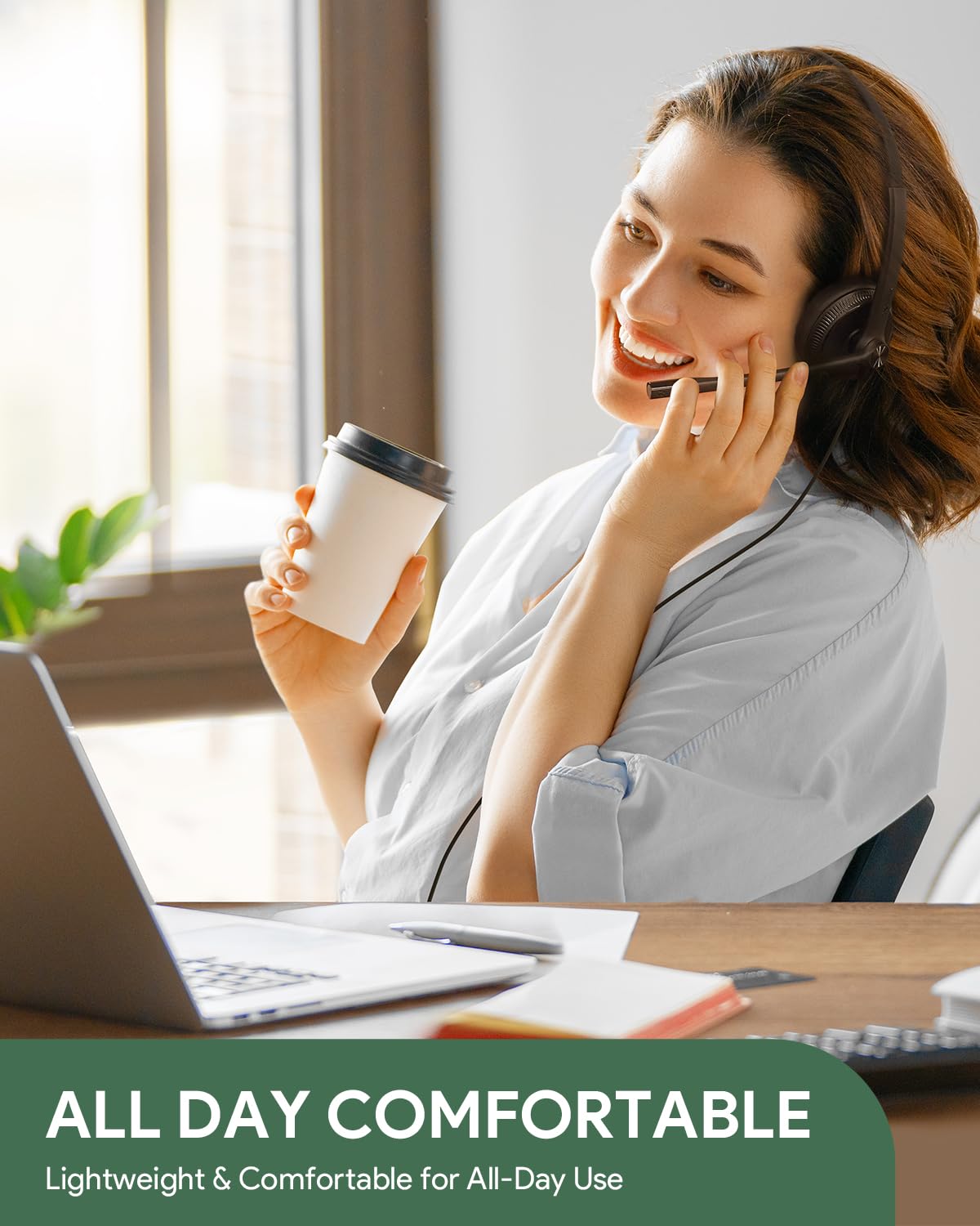 Yealink Uh34 Usb Headset With Mic,Usb-A 3.5Mm Jack Wired Headphones With Noise Cancelling Microphone,In-Line Control For Mac Pc