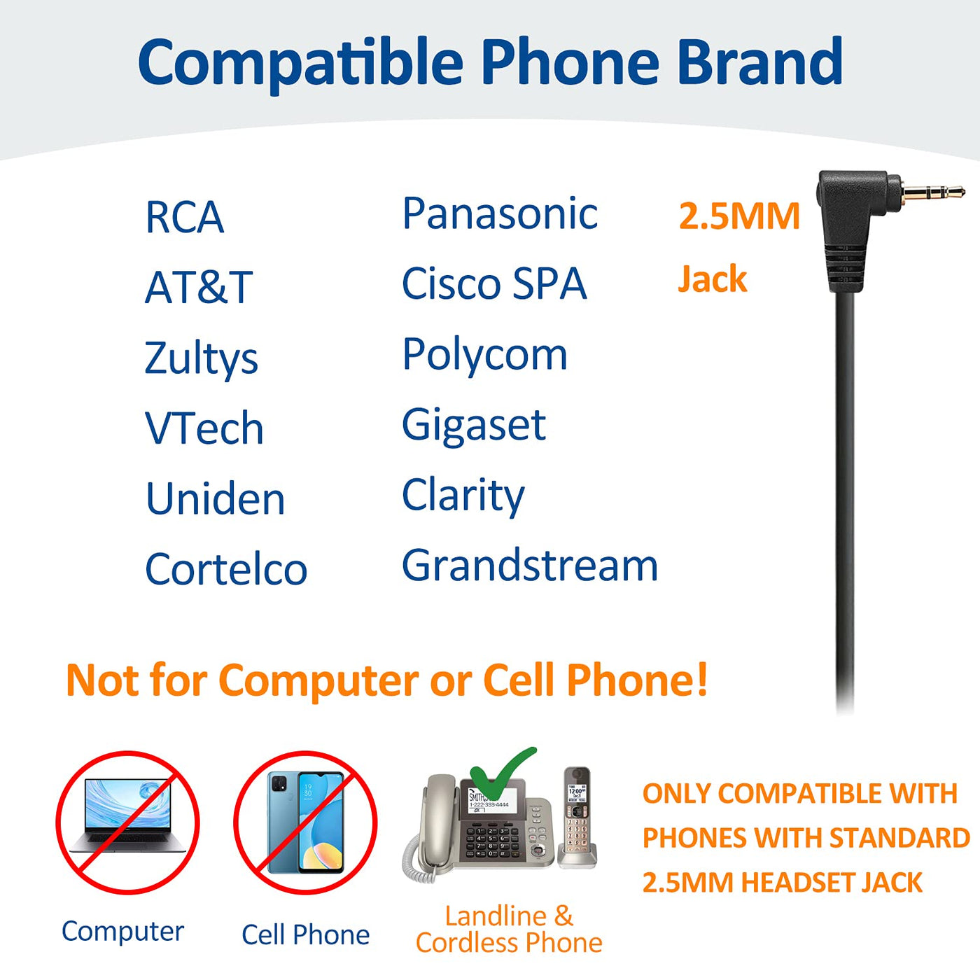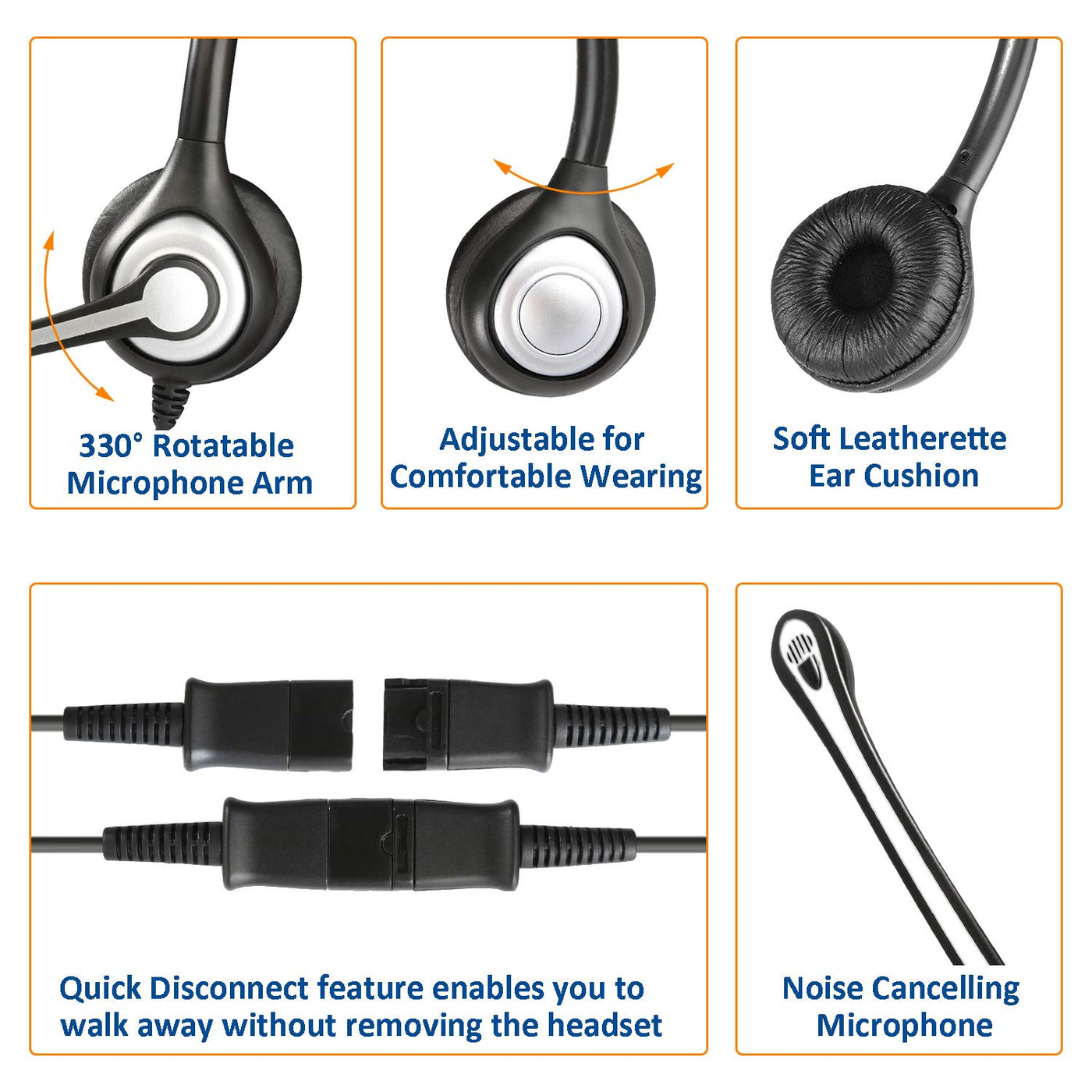 Wantek Wired Telephone Headset Dual Ear With 2.5Mm Jack, Noise Cancelling Mic, Quick Disconnect, Work For Cordless Phones At&T M