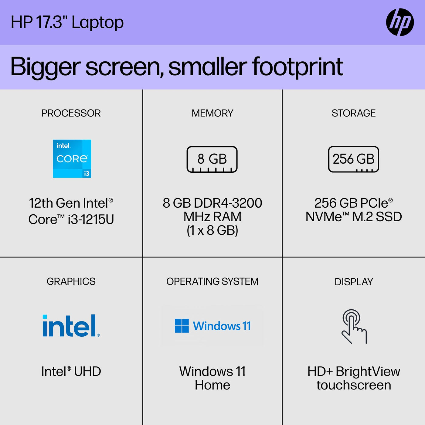 17'' I3 1215U 8Gb 256 Ssd Tou|Core I3 1215U U15, 8Gb Ddr4 1Dm 3200, Touch/17.3 Hd+ Brightview Sva 250 Nits Narrow Border Flat