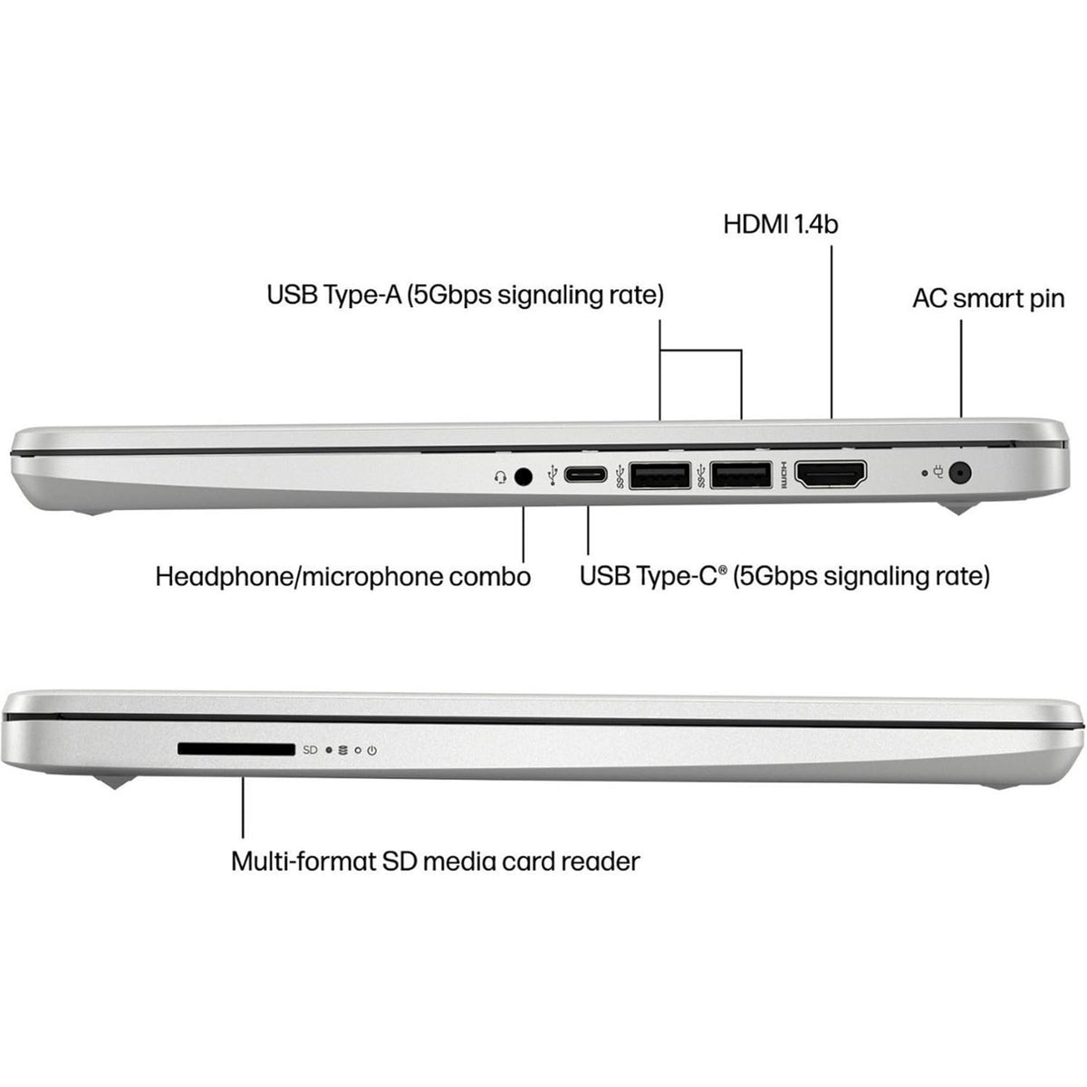 Processor: Intel Celeron N4120 (Up To 2.6 Ghz Burst Frequency, 4 Mb L2 Cache, 4 Cores, 4 Threads) Graphics: Intel Uhd Graphics Operating System: Windows 11 Home 64-Bit Memory: 32Gb Ddr4 Sdram Hard Drive: 1Tb Storage (512Gb Solid State Drive (Ssd) + 512Gb External Hard Drive) Optical Drive: No Display: 14 Inch Diagonal, Hd (1366 X 768), Micro-Edge, Brightview, 220 Nits, 45% Ntsc Connectivity: Realtek Rtl8821Ce 802.11A/B/G/N/Ac (1X1) Wi-Fi And Bluetooth 4.2 Combo Audio: Dual Speakers Keyboard: Us English, Nonbacklit Full Size Keyboard Built-In Hd Webcam: Hp True Vision 720P Hd Camera With Integrated Dual Array Digital Microphones Media Drive:Multi-Format Sd Media Card Reader Ports: 1 X Usb 3.1 Gen 1 Type-C (Data Transfer Only, 5 Gb/S Signaling Rate) 2 X Usb 3.1 Gen 1 Type-A (Data Transfer Only) 1 X Ac Smart Pin 1 X Hdmi 1.4B 1 X Headphone / Mic Combo Jack Battery:: Up To 11.5 Hours Color: Natural Silver Dimensions L X W X H (Inches): 12.7 X 8.8 X 0.7 Weight: 3.2 Lbs Accessories: 512Gb External Hard Drive Microfiber Cloth Hotkey Sticker