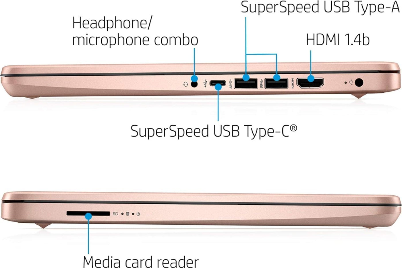 Processor: Intel Celeron N4120 (Up To 2.6 Ghz Burst Frequency, 4 Mb L2 Cache, 4 Cores, 4 Threads) Graphics: Intel Uhd Graphics Operating System: Windows 11 Home 64-Bit Memory: Up To 32Gb Ddr4 Sdram Hard Drive: Up To 1Tb Storage Optical Drive: No Display: 14-Inch Diagonal, Hd (1366 X 768), Micro-Edge, Brightview, 220 Nits, 45% Ntsc Connectivity: Realtek Rtl8821Ce 802.11A/B/G/N/Ac (1X1) Wi-Fi And Bluetooth 4.2 Combo Audio: Dual Speakers Keyboard: Us English, Nonbacklit Full Size Keyboard Built-In Hd Webcam: Hp True Vision 720P Hd Camera With Integrated Dual Array Digital Microphones Media Drive:Multi-Format Sd Media Card Reader Ports: 1 X Usb 3.1 Gen 1 Type-C (Data Transfer Only, 5 Gb/S Signaling Rate) 2 X Usb 3.1 Gen 1 Type-A (Data Transfer Only) 1 X Ac Smart Pin 1 X Hdmi 1.4B 1 X Headphone / Mic Combo Jack Battery: Up To 11.5 Hours Dimensions L X W X H (Inches): 12.7 X 8.8 X 0.7 Weight: 3.2 Lbs Accessories: 512Gb External Hard Drive Microfiber Cloth Hotkey Sticker