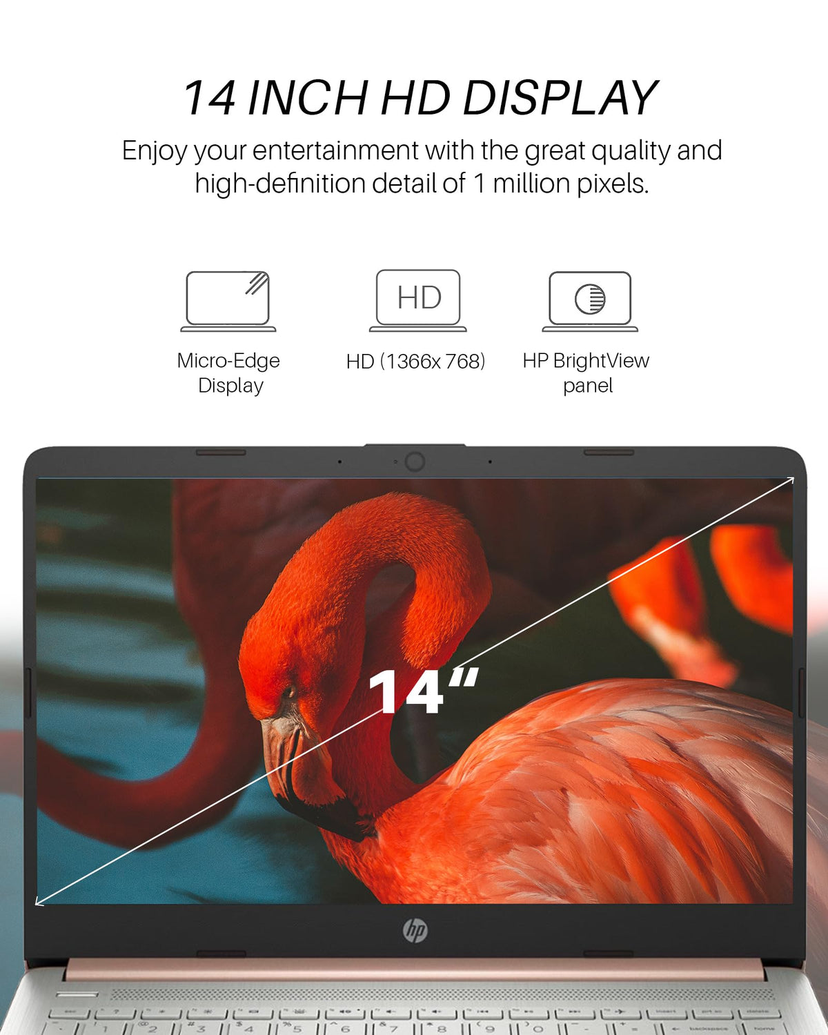 Hp 14 Inch College Students Laptop, Ultral Light Rose Gold Laptop With 1 Year Office 365, Intel Celeron N4120, 16Gb Ram + 384Gb