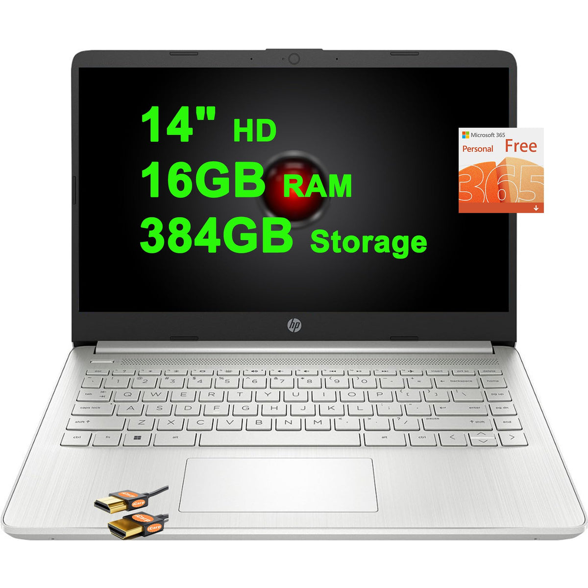 Hp 14 Lightweight Business And Student Laptop 14'' Hd Anti-Glare Intel Celeron Quad-Core N4120 16Gb Ram 128Gb Emmc + 256Gb Sd Ca