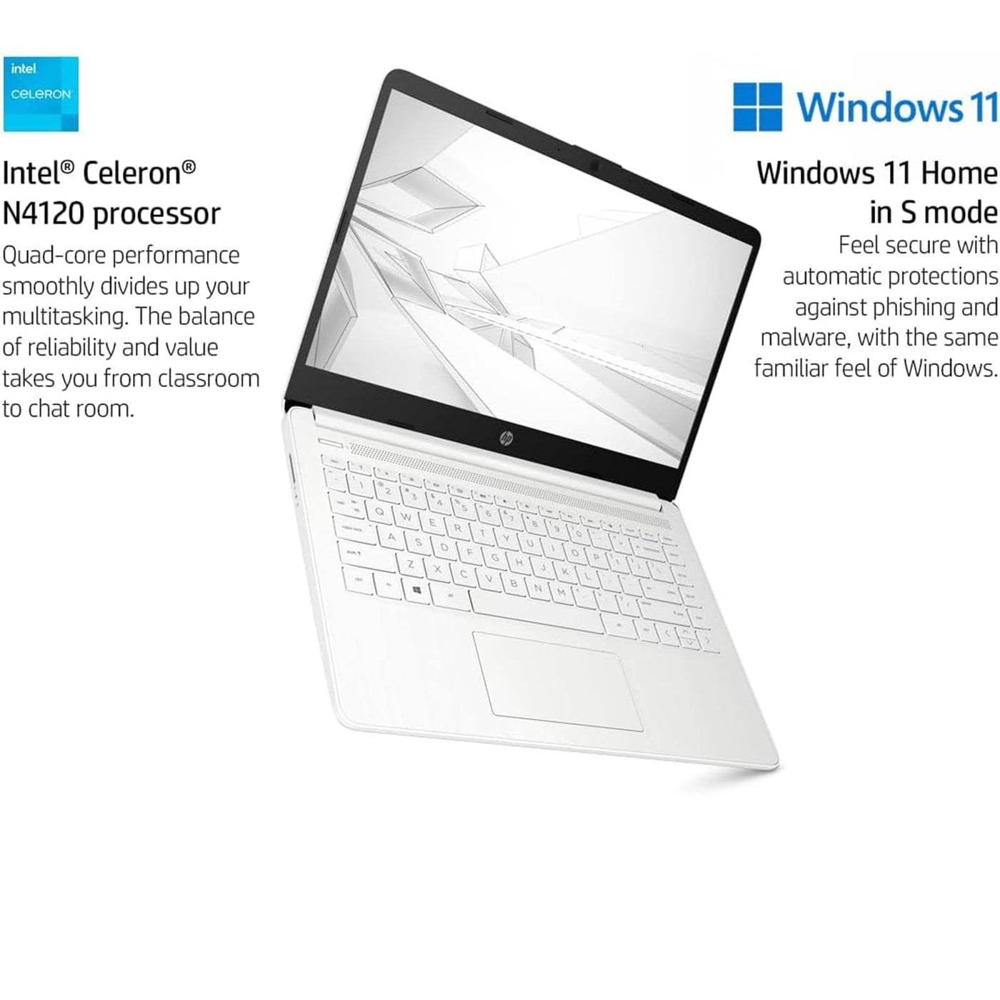 Hp 14 Laptop Windows 11 Features Windows 11 S Mode (Support Switching To Windows 11) Hp Stream 14 Laptop Windows11 With Fast Boot Times, Increased Responsiveness, And Added Protection. Vivid Visuals Hp Laptops 14Inch Hd Resolution For Presenting Vibrant, Crisp Images; Narrow Bezels Gives Users A Greater Workspace More Flexible. More Power Comes With Quad-Core Intel Processor, The Hp 14Inch Laptop Loads Content-Rich Web Pages Fast, Provides Crisp Video Playback, And Enables You To Multitask Effortlessly By Allowing Multiple Pages To Run At The Same Time. Faster, More Stable Connections Enjoy Faster Speeds, Improved Performance, Greater Capacity And Lower Latencies Than Earlier Iterations. Ultimate Flexibility The Usb Type-C Ports Make It Easy To Charge, Stream Media Or Connect With Peripherals; And Hdmi Port Provides The Option To Hook The Laptop Up To An External Display; Plus, Theres Also A Microsd Card Reader To Enable Extra Storage For Maximum Convenience And Compatibility. Hp Laptops 32Gb Ram 32Gb Ram Memory For Powerful Processing For Multitasking, Computing, Smooth Gaming. 64Gb Ssd Storage 64Gb Emmc Storage Offers Quick Boot-Ups, Fast Data Access, And Improves The Overall Performance. A Truly Powerful Audio Experience While Dual Stereo Speakers With Dual Array Digital Microphone Easily Produce High-Range And Low-Range Frequencies Without Distortion To Get You Fully Absorbed In Your Favorite Music And Movies. Long Battery Life 12Hours Battery Life Goes A Long Way. With Hp Fast Charge, Get In A Full Days Work With Time To Spare. Ultralight And Slim Weighs 3.24Lbs And 0.69'' Thin.