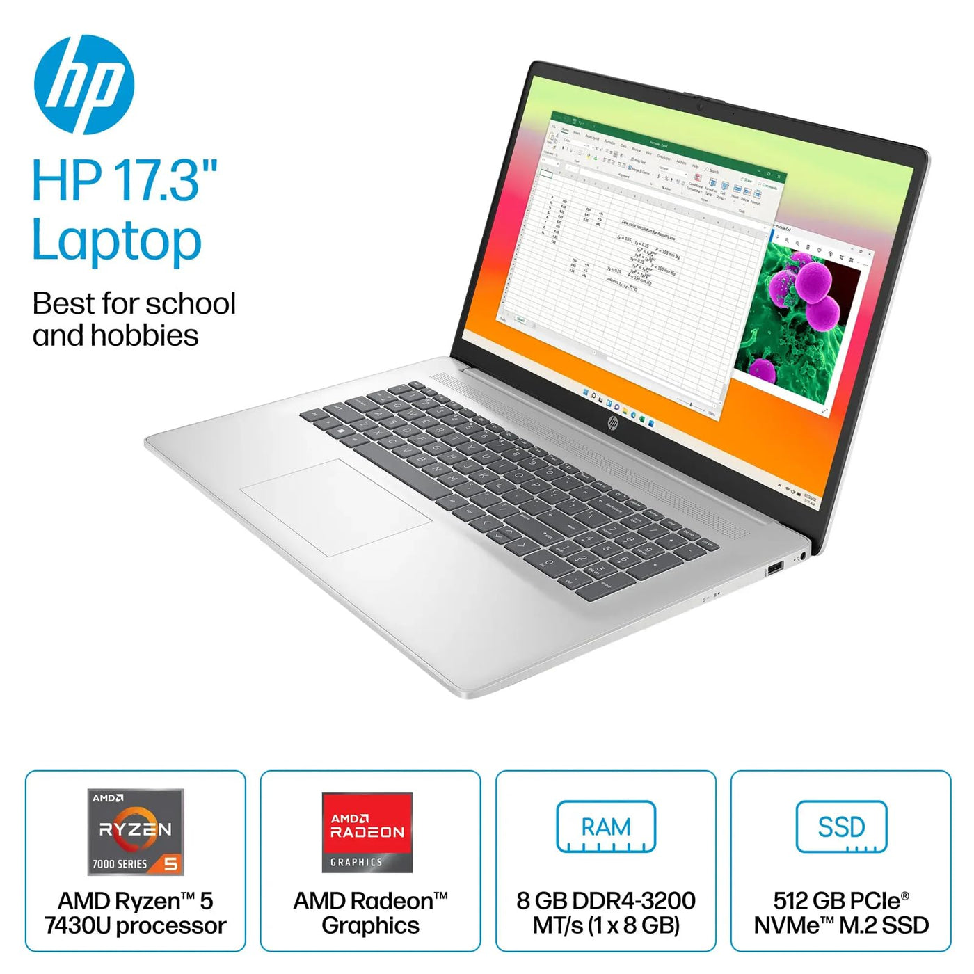 Hp 17.3'' 1920 X 1080 (Full Hd) Laptop, Amd Ryzen 5 7430U(6 Core), Amd Radeon Graphics, 8Gb Ddr4 Ram, 512Gb Ssd, Hdmi, Wi Fi 6,