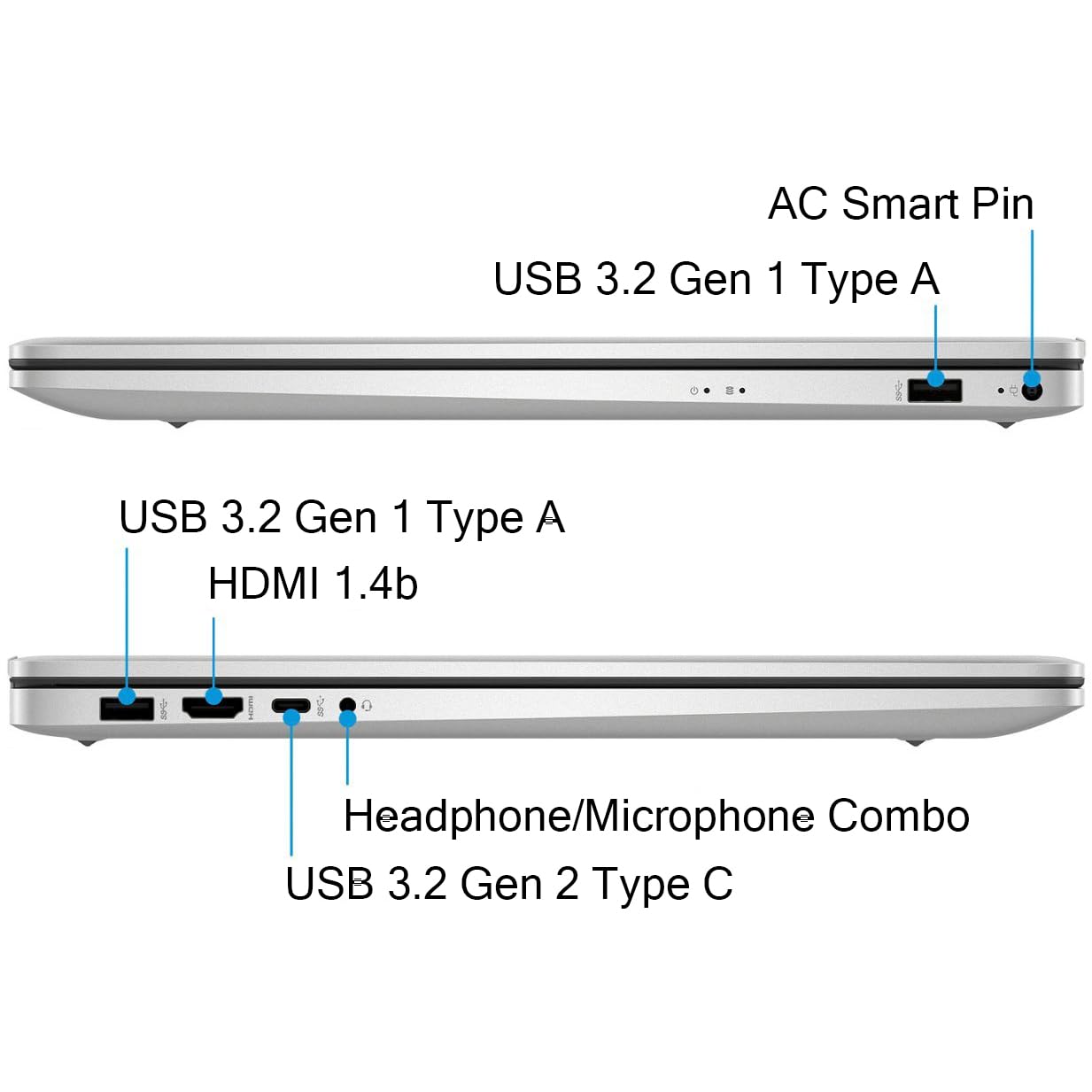 Tech Specs Processor: 12Th Gen Intel Core I3-1215U Processor 1.2 Ghz (6 Cores, 8 Threads, 10M Cache, Up To 4.4 Ghz With Intel Turbo Boost Technology) Operating System: Windows 11 Pro, English Graphics Card: Intel Uhd Graphics Display: 17.3'' Diagonal, Fhd (1920 X 1080), Narrow Bezels, Ips, Anti-Glare, 300 Nits, 45% Ntsc Memory: 8 Gb, Ddr4, 3200 Mhz Hard Drive: 512 Gb, M.2, Pcie Nvme, Ssd Case: Silver Keyboard: Non-Backlit Keyboard, English, Full-Size, Soft Grey Keyboard With Numeric Keypad Software Included: Mcafee Livesafe Microsoft Office 2021 With Lifetime License Warranty: One Year Seller Warranty Ports: 1 X Superspeed Usb Type-C 5Gbps Signaling Rate, Data Transfer Only, No Displayport And Power Delivery 2 X Superspeed Usb Type-A 5Gbps Signaling Rate 1 X Ac Smart Pin 1 X Headset (Headphone And Microphone Combo) Port 1 X Hdmi 1.4B Port Dimensions & Weight: Height: 0.78 In. (19.8 Mm) Width: 15.78 In. (400.8 Mm) Depth: 10.15 In. (257.8 Mm) Weight (Minimum): 4.6 Lbs. 2.09 Kg Wireless Connectivity: Wi-Fi 802.11A/B/G/N/Ac (2X2) And Bluetooth 5 Webcam: Hp True Vision 720P Hd Camera With Camera Shutter, Temporal Noise Reduction And Integrated Dual Array Digital Microphones Audio And Speakers: Hd Audio With Stereo Speakers Primary Battery: 3-Cell, 41 Wh Li-Ion, Integrated Up To 6 Hours Mixed Usage Battery Life Hp Fast Charge, Go From 0 To 50% Charge In Approximately 45 Minutes Power: 45W Smart Ac Power Adapter, Input: 100~240V Ac 50/60Hz Universal