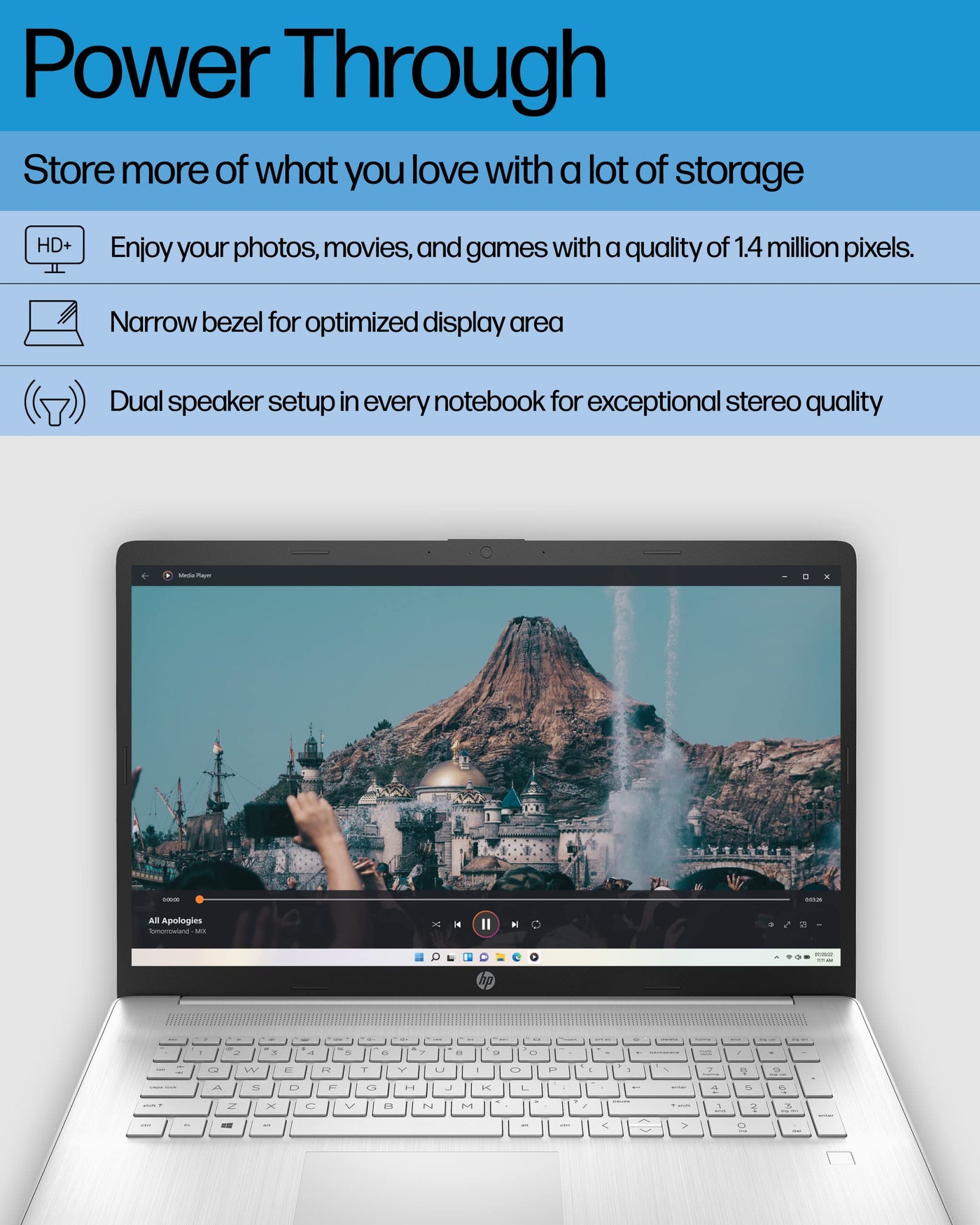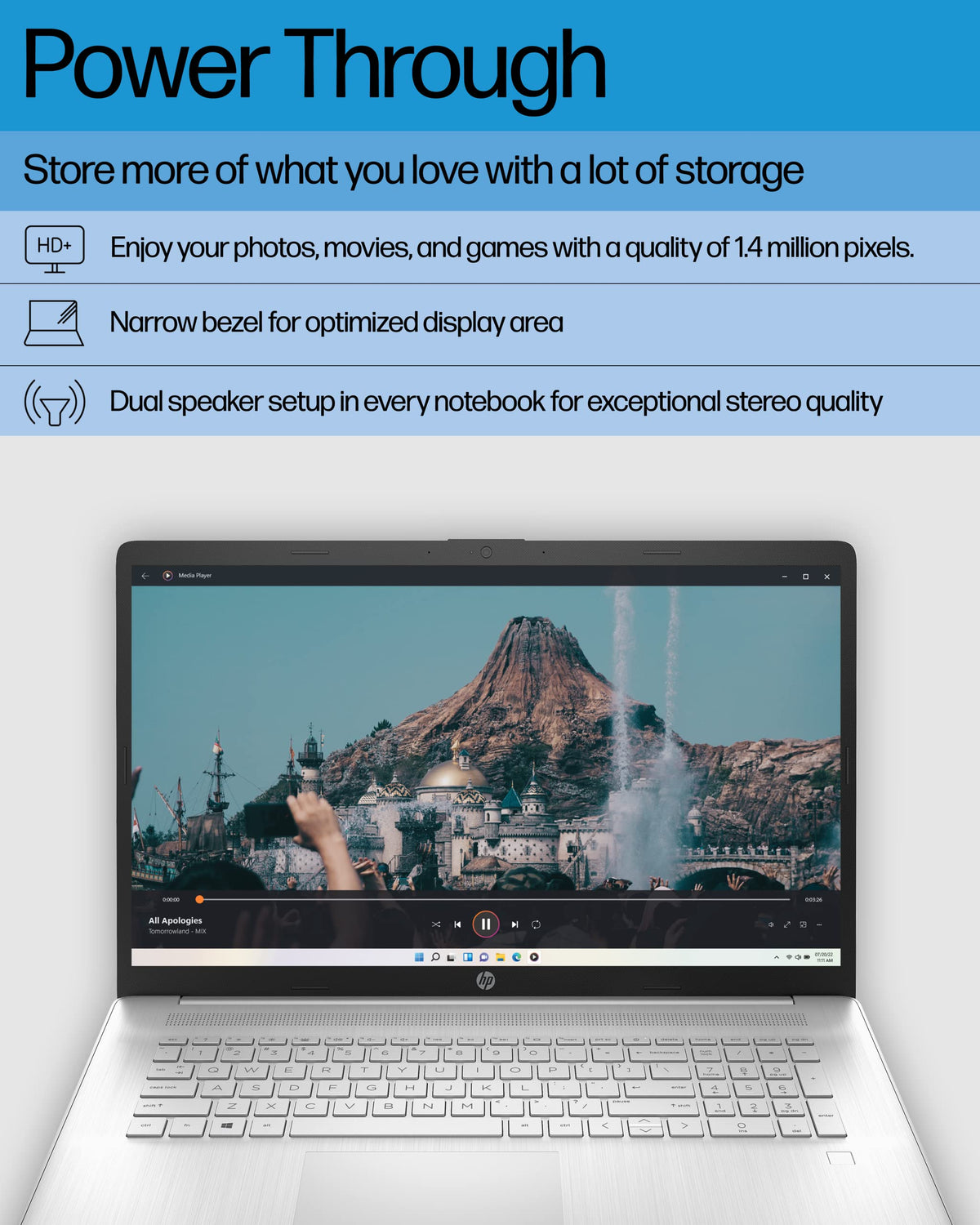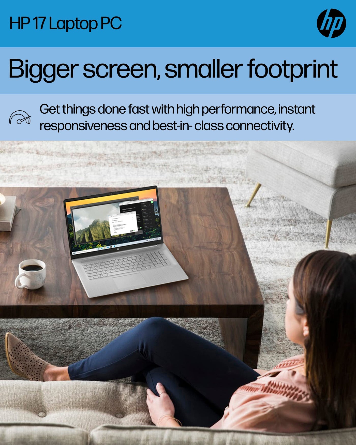 Thoughtfully Crafted, The Hp 17 Laptop Pc Blends Sustainability With Performance And Comfort. Go Beyond The Traditional Laptop Computer Look And Feel With This Devices Satisfying And Ergonomic Lift-Hinge Design And Enlarged Click Pad. Showcase All Of Your Favorite Content In Crisp Hd+ Resolution On A Narrow-Edge, Glossy Finish, 17.3-Inch Screen (1). Enjoy Reliable Performance And Incredible Graphics Thanks To The Perfect Combination Of The 11Th Generation Intel Core I5-1135G7 Processor And Intel Iris Xe Graphics (2) (3). Your Hp Computer Laptop Offers The Storage You Need And The High Bandwidth You Crave With A 512 Gb Solid State Drive And 8 Gb Of Ram (4) (5). This Hp Laptop I5 Takes Work And Play To New Levels With Up To 8 Hours And 45 Minutes Of Battery Life (6). Plus, Enjoy Quicker Recharges When You Need As Hp Fast Charge Takes Your Device From 0 To 50% Power In 45 Minutes (7). With Windows 11, Your Hp Notebook Laptop Gives You A Whole New Perspective As You Connect, Game, And Create In New Ways (8). Your Internet Is Smooth, Stable, And Fast Enough For Your Modern Life With A Wi-Fi 6 (2X2) And Bluetooth Combo (9) (10). Experience Peace Of Mind That Your Windows Laptop Is Protected Thanks To Hps 1-Year Limited Warranty. Keep Up The Productivity From Anywhere. This Laptop Core I5 Has Everything You Need For Clear, Vibrant Video Calls With An Hp Truevision Hd Camera, Dual Array Digital Microphones (11), And Custom-Tuned Speakers. Stay Productive, Even In The Dark With Our Windows 11 Laptops Backlit Keyboard. Enjoy Added Security, Too, With A Patented Fingerprint Reader Built Right Into The Keyboard (12). Do Your Part Toward A Sustainable Future With An Eco-Conscious Hp Laptop, Built With Ocean-Bound And Post-Consumer Recycled Plastics (13, 14), While Also Being Shipped In Completely Recyclable Packaging (15). The Hp 17.3 Laptop Is Also Energy Star Certified (16) And Epeat Silver Registered (17).