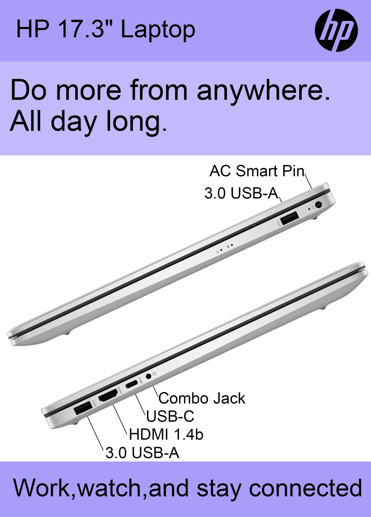 A Dynamic Processor That Adapts To You For Superior Multi-Tasking Performance12Th Gen Intel Core Processor Distributes Performance Where You Need It The Most - Saving You Time And Increasing Your Ability To Do The Things You Actually Want.Intel Uhd Graphicssmoothly Stream 4K Content And Play Your Favorite Games. With Excellent Intel Uhd Graphics Performance, Youll See The Difference In Everything You Do.Hp Fast Chargego To 50% Charge In Approximately 45 Minutes.Full Hd Ips Displayenjoy Vibrant, Crystal-Clear Images With 178 Wide-Viewing Angles.Anti-Glare Panelnon-Reflective And Low Gloss Means You'Ll Get Less Glare While You'Re Outside.Wi-Fi 5 (2X2) And Bluetooth 5 Wireless Cardstay Connected To Wi-Fi And To Bluetooth Accessories With Wireless Technology.Tuned Stereo Speakershp Custom-Tunes The Dual Speaker Setup In Every Notebook For Exceptional Stereo Quality.Hp True Vision Hd Cameravideo Chat In Vibrant Clarity, Even In Low Light, And Make Every Conversation A Face-To-Face Experience For A Better Way To Stay In Touch.Camera Shutterstay Secure With A Physical Camera Shutter. Video Chat With Peace Of Mind With A Privacy Camera You Can Close When Not In Use.Lift-Hinge Designthe New Lift-Hinge Design Elevates Your Keyboard For More Natural And Comfortable Typing.Key Features And Benefits:Cpu: 12Th Gen Intel Core I3-1215U Processoroperating System: Windows 11 Homegraphics:Intel Uhd Graphicsdisplay: 17.3'' Diagonal, Fhd (1920 X 1080), Ips, Anti-Glare, 300 Nits, 45% Ntscports:1 X Superspeed Usb Type-C 5Gbps Signaling Rate2 X Superspeed Usb Type-A 5Gbps Signaling Rate1 X Hdmi 1.4B1 X Ac Smart Pin1 X Headphone/Microphone Comboaudio: Dual Speakerswireless Connectivity: Wi-Fi And Bluetooth