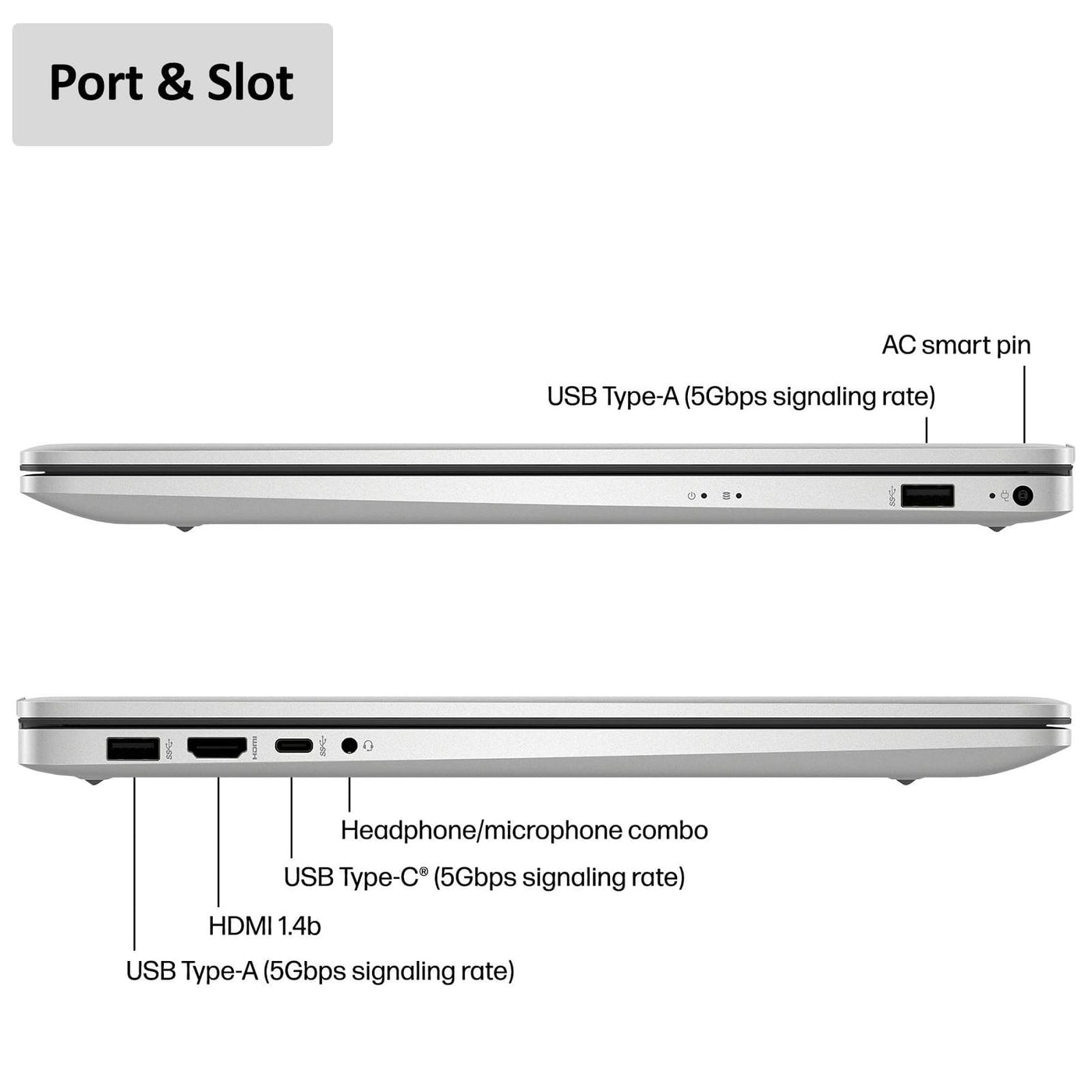 Statement:Original Seal Is Opened For Upgrade Only. If The Computer Has Modifications, Then The Manufacturer Box Is Opened For It To Be Tested And Inspected And To Install The Upgrades To Achieve The Specifications As Advertised.?Display?Display Type:Ledscreen Type:Ipsscreen Size:17.3 Inchesscreen Resolution:1920 X 1080 (Full Hd)Touch Screen:Nobrightness:300 Nits?Processor?Processor Brand:Intelprocessor Model:Intel 12Th Generation Core I3Processor Model Number:1215Ucpu Boost Clock Frequency:4.4 Gigahertznumber Of Cpu Cores:6-Corecpu Cache Memory Level:L3L3 Cache:10 Megabytes?Storage?Storage Type:Ssdtotal Storage Capacity:Ssdsolid State Drive Capacity:512Gb/1Tb/2Tb?Memory?System Memory (Ram):8Gb/16Gb/32Gbtype Of Memory (Ram):Ddr4System Memory Ram Speed:3200 Megahertz?Graphics?Graphics Type:Integratedgpu Brand:Intelgraphics:Intel Uhd Graphics?Compatibility?Operating System:Windows 11 Pro?Connectivity?Display Connector(S):1 X Hdmi 1.4Number Of Hdmi Outputs (Total):1Usb Ports:1 X Usb-C 3.0, 2 X Usb-A 3.0Number Of Usb Ports (Total):3Headphone Jack:Yesmicrophone Input:Yeswireless Connectivity:Bluetooth, Wi-Fiwireless Networking Standard:Wi-Fi 5?Power?Power Supply Maximum Wattage:45 Wattsbattery Life (Up To):9 Hours?Camera?Front-Facing Camera:Yesfront Facing Camera Video Resolution:720Pbuilt-In Microphone:Yes?Features?2-In-1 Design:Nobacklit Keyboard:Notouchpad Type:Hp Imagepadaudio Technology:Hd Audio With Stereo Speakerssecurity Features:Privacy Camera?Dimensions?Product Height:0.78 Inchesproduct Width:15.78 Inchesproduct Depth:10.15 Inchesproduct Weight:4.6 Pounds
