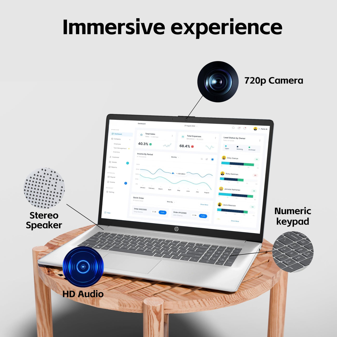 Hp 17 Laptop, Intel Core I3 N305 Processor, 8-Cores, 16Gb Ram, 1Tb Ssd, 17.3'' Hd Display, Numeric Keypad, 720P Camera, Long Bat