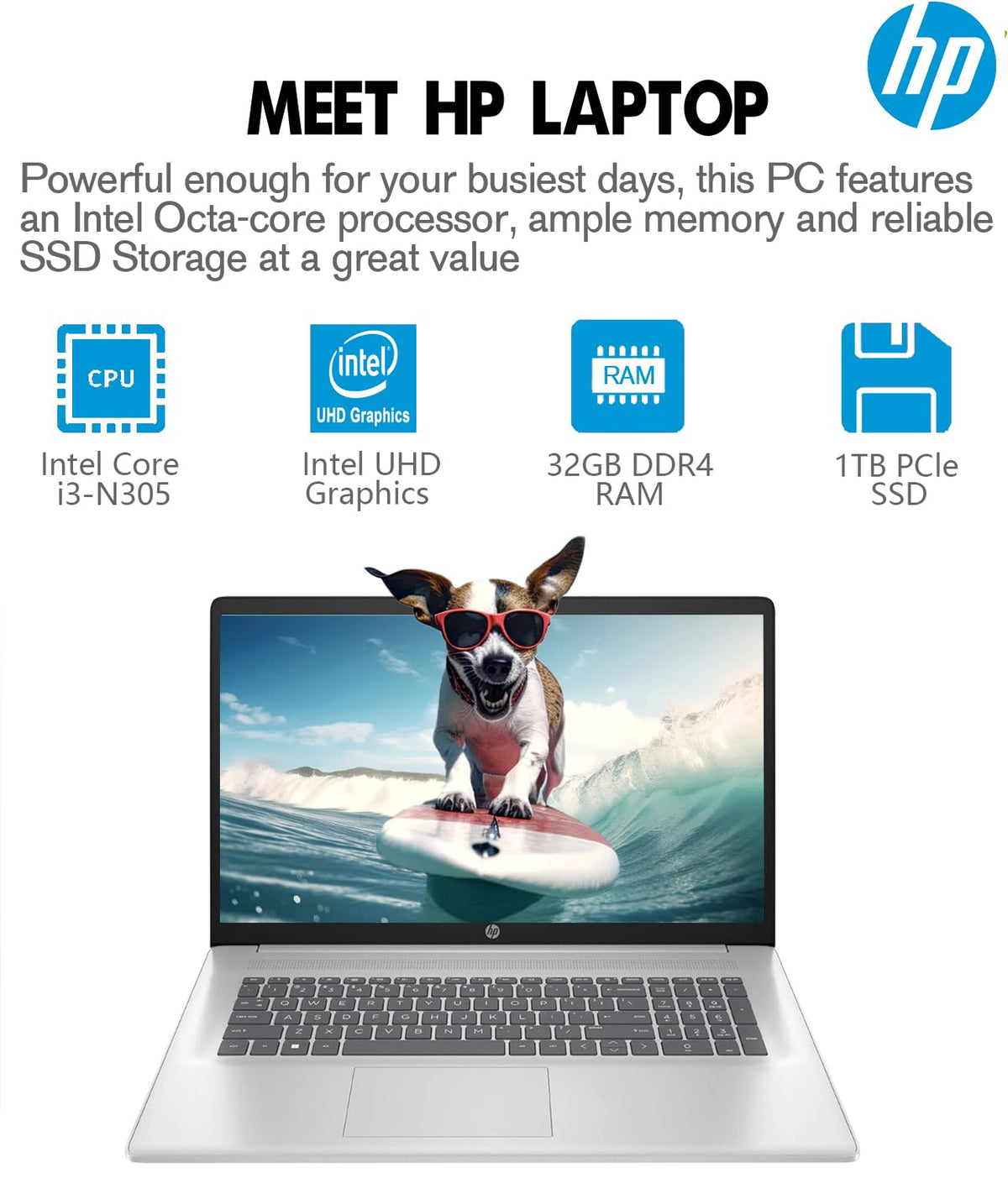 Get Your Hands On The Latest 17.3 Hp Windows Laptop Pc, Ideal For Business, Office, College Students, Or Home Use. Multitasking On The Windows Pro Computer Laptop Feels Easy And Fast With The Intel Octa-Core Processor, Powerful Graphics, And Speedy Wi-Fi Technology. Store More Of What You Love With A Lot Of Storage. Blending Performance And Comfort, This Hp Notebook Laptop I3 Is Perfect For Those On The Go, With Its 17.3-Inch Screen Size And Lightweight Design. Operation System Windows 11 Professional 64-Bit For Business And Work - Elevate Every Workstyle With Breakthrough Productivity Powered By Ai, Immersive Workflows, And Unmatched Personalization Processor Intel Core I3-N305 (Up To 3.8 Ghz With Intel Turbo Boost Technology, 6Mb L3 Cache, 8 Cores, 8 Threads)Memory 32 Gb Ddr4 Ram For Easy Multitasking, Effortless Browsing And Streaming Storage 1 Tb Pcie Nvme M.2 Ssd For Fast Bootup And Ample Storage Display 17.3'' Diagonal, 1080P Full Hd (1920 X 1080), Ips, Anti-Glare, 250 Nits, 45% Ntsc. Enjoy Your Photos, Movies, And Games With Crisp Quality And Vibrant Visuals Graphics Intel Uhd Graphics - Smooth Visuals, Energy Efficiency, And Reliable Performance Connectivity Realtek Wi-Fi 6 (2X2) And Bluetooth 5.3 (Gigabit Data Rate) Mu-Mimo Supported 5Gbps Signaling Rate 1X Usb-C And 2X Usb-A, Hdmi 1.4B, Headphone/Microphone Combo Camera Hp True Vision Hd Camera With Privacy Shutter. Video Chat In Vibrant Clarity And Make Every Conversation A Face-To-Face Experience Battery Up To 9.5 Hours Runtime To Let You Work Or Play All Day Long, And Hp Fast Charge Premium Design Full-Size Keyboard With 10 Key Numeric Keypad Slim, Sleek Natural Silver Design. Thin And Light, Easily Portable Even For A 17.3 Inch Laptop