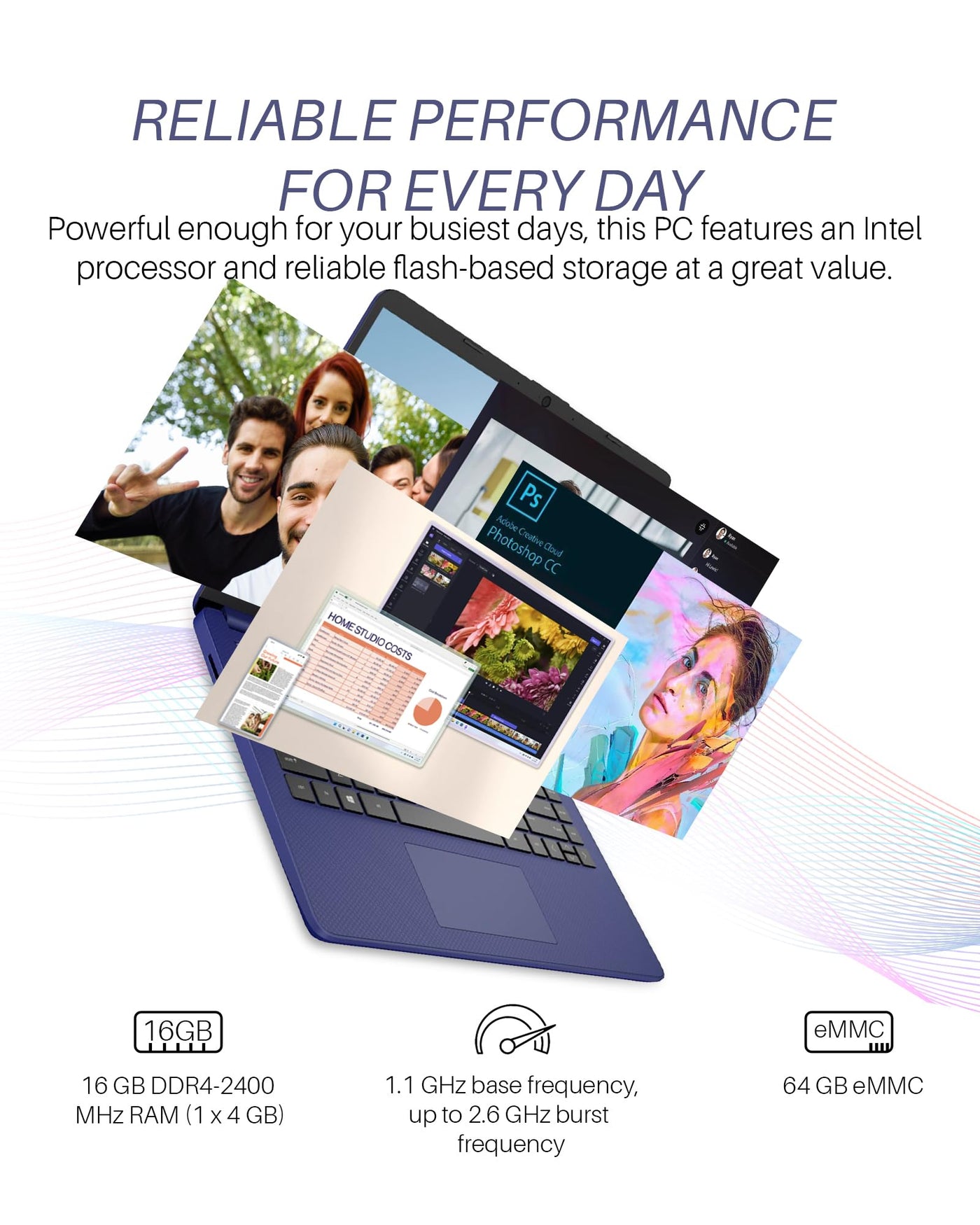 Hp 2024 Stream 14 Inch Laptop For Students And Business, Intel Celeron N4120, Blue Laptop 16Gb Ram + 320Gb Storage (64Gb Emmc+25