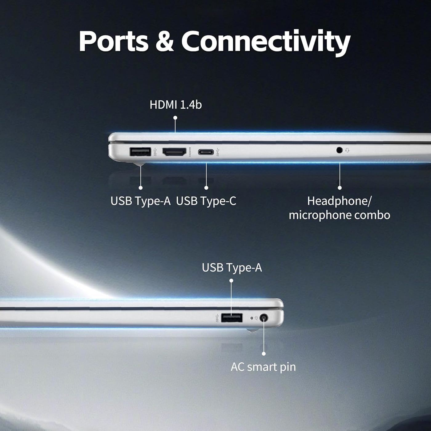Processor: Intel Core I3-N305 Processor (8 Cores, Up To 4.4 Ghz) Graphics : Intel Uhd Graphics Operating System: Windows 11 Memory: 16 Gb Ddr4 Hard Drive: 512Gb Pcie Nvme M.2 Solid State Drive Optical Drive: None Connectivity: Wi-Fi 6 And Bluetooth Display: 15.6'' Fhd (1920 X 1080) Audio: Hd Audio With Stereo Speakers Keyboard: Us English, Full Size Keyboard Built-In Hd Webcam: Hp True Vision Hd Camera Ports: 2 X Usb 3.1 Type-A (5Gbps Signalling Rate) 1 X Usb 3.1 Type-C (5Gbps Signalling Rate) 1 X Hdmi 1 X Headphone / Microphone Combo Jack 1 X Ac Smart Pin Battery: Up To 11 Hours Color: Silver Dimensions: 14.17 X 9.29X 0.73 Inches Weight: 3.52 Lbs