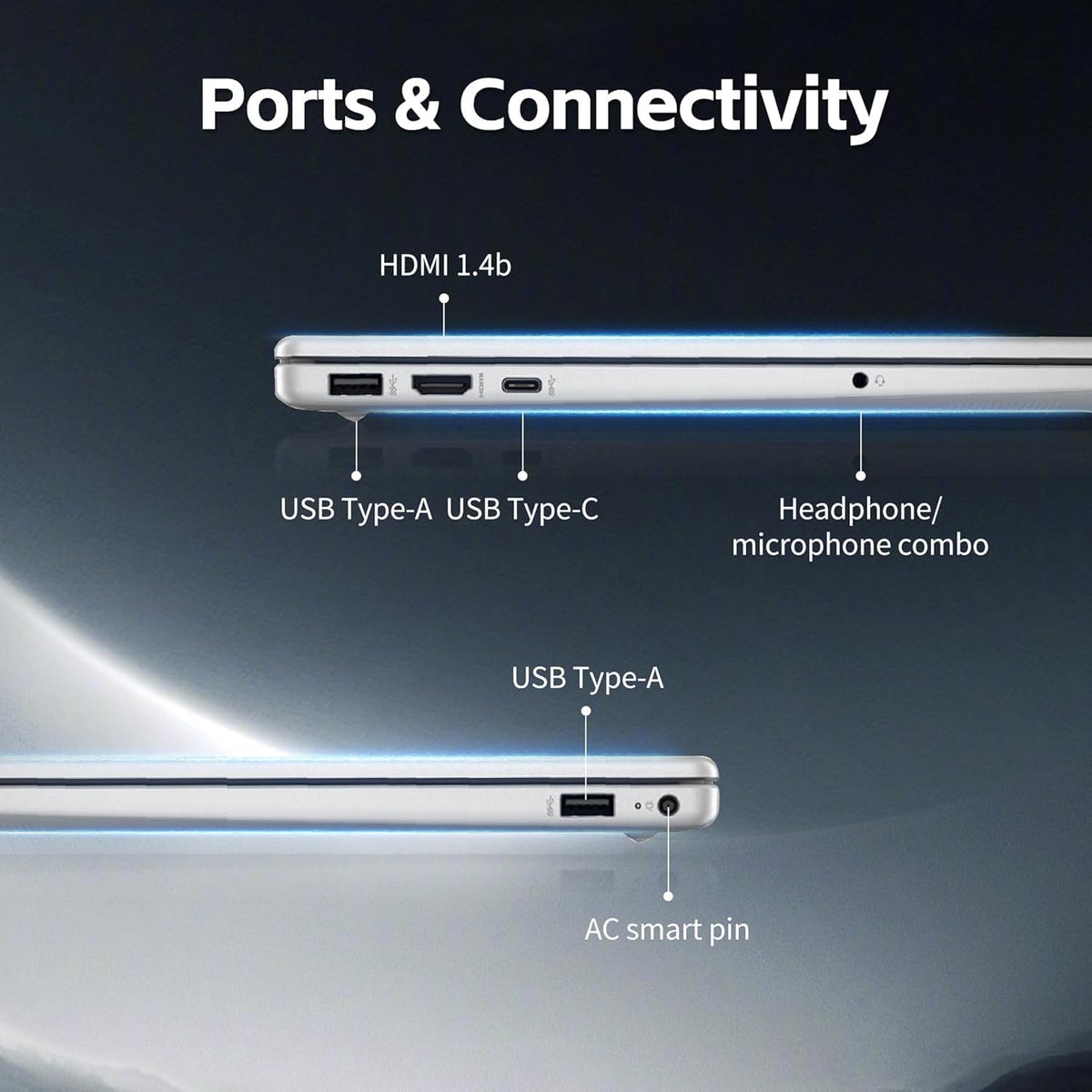Processor: Intel Core I3-N305 Processor (8 Cores, Up To 4.4 Ghz) Graphics : Intel Uhd Graphics Operating System: Windows 11 Memory: 32 Gb Ddr4 Hard Drive: 2Tb Pcie Nvme M.2 Solid State Drive Optical Drive: None Connectivity: Wi-Fi 6 And Bluetooth Display: 15.6'' Fhd (1920 X 1080) Audio: Hd Audio With Stereo Speakers Keyboard: Us English, Full Size Keyboard Built-In Hd Webcam: Hp True Vision Hd Camera Ports: 2 X Usb 3.1 Type-A (5Gbps Signalling Rate) 1 X Usb 3.1 Type-C (5Gbps Signalling Rate) 1 X Hdmi 1 X Headphone / Microphone Combo Jack 1 X Ac Smart Pin Battery: Up To 11 Hours Color: Silver Dimensions: 14.17 X 9.29X 0.73 Inches Weight: 3.52 Lbs