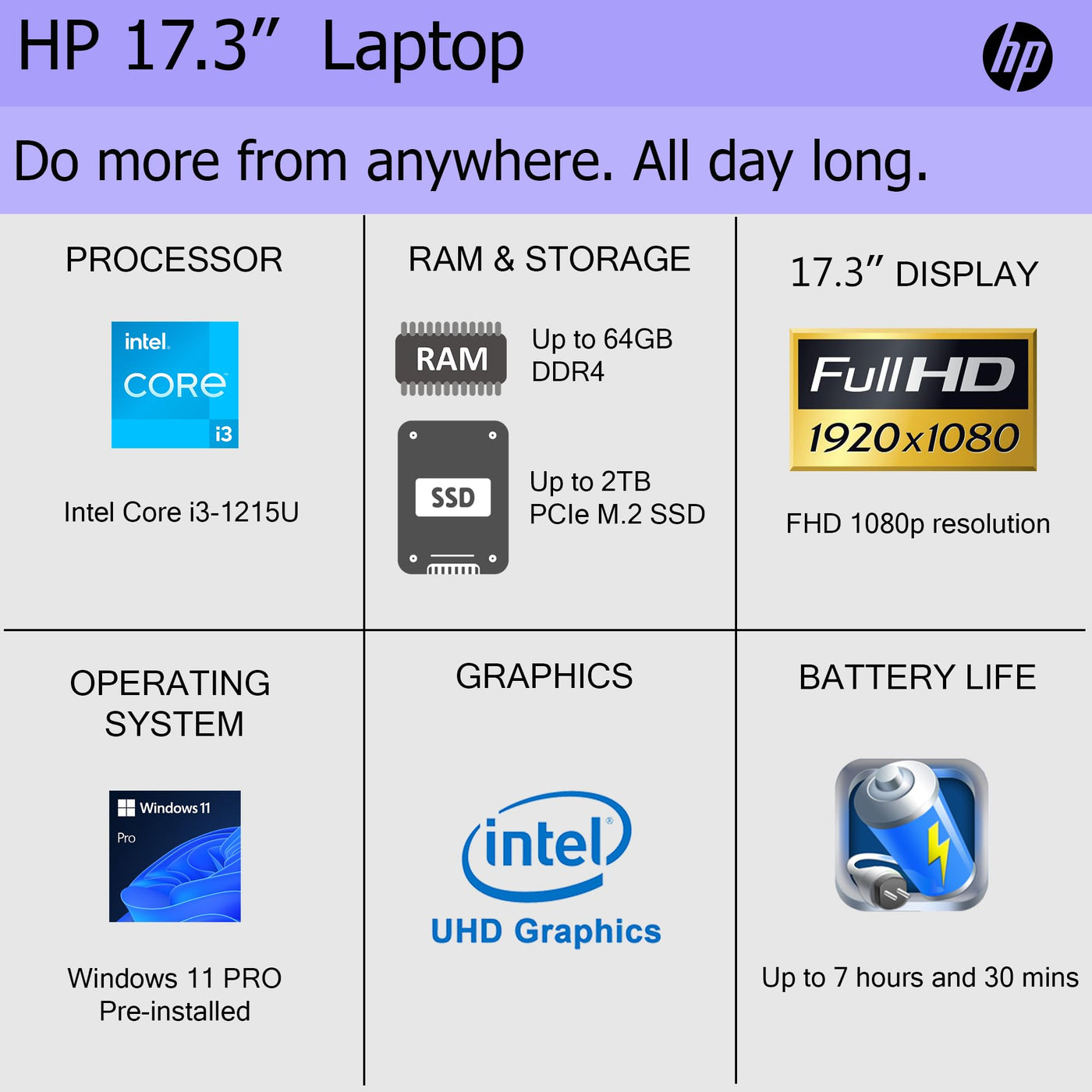 Hp Laptop For School And Office Use, 17.3'' Full Hd Display, 32Gb Ram, 2Tb Ssd + 500Gb Ssd Protable Drive, Intel 6-Core Processo