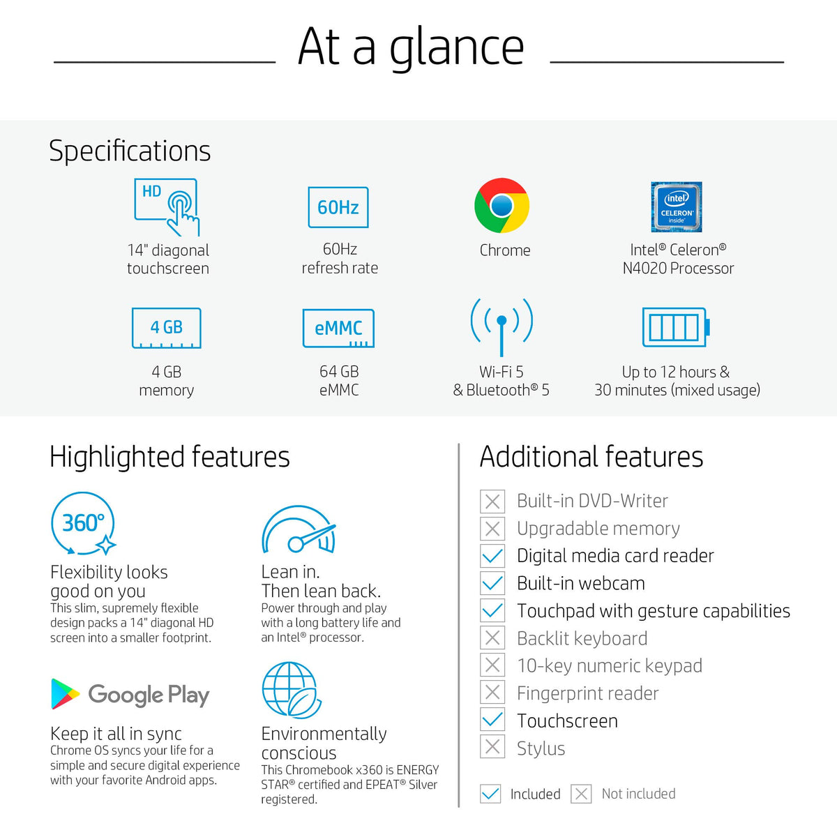 Hp Laptop X360 14A Chromebook 14'' Hd Touchscreen, Entertaining From Any Angle Intel Celeron, 4Gb Ddr4 64Gb Emmc Wifi Webcam Ste