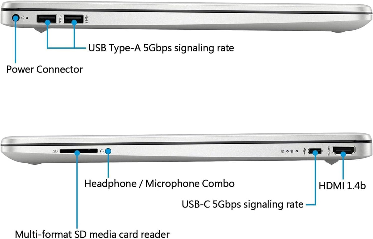 Accessory: Wowpc Recovery Usb Processor: Intel Celeron N4120 (Up To 2.6 Ghz, 4 Cores, 4 Threads) Graphics: Intel Uhd Graphics Operating System: Windows 11 Pro 64-Bit Memory: Up To 32Gb Ddr4 Ram Hard Drive: Up To 2Tb Pcie Nvme M.2 Ssd Display: 15.6'' Diagonal, Hd (1366 X 768), Micro-Edge, Anti-Glare, 220 Nits, 45% Ntsc Connectivity: Wifi, Bluetooth 5 Ports: 1 X Usb Type-C 5Gbps Signaling Rate (Supports Data Transfer Only And Does Not Support Charging Or External Monitors) 2 X Usb Type-A 5Gbps Signaling Rate 1 X Multi-Format Sd Media Card Reader 1 X Hdmi 1.4B 1 X Headphone / Microphone Combo Jack 1 X Power Connector Audio: Dual Speakers Keyboard: Full Size Keyboard, With Numeric Keypad, Us English Built-In Hd Webcam: Hp True Vision 720P Hd Camera With Integrated Dual Array Digital Microphones Color: Silver Dimensions L X W X H (Inches): 14.11 X 9.5 X 0.7 Weight: Starting At 3 Lbs