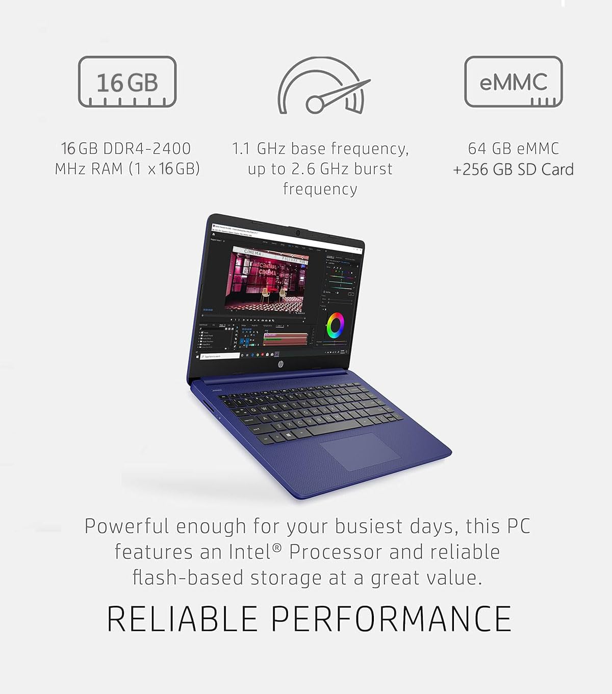 Hp Newest 14In Schools And Business Laptop, Intel Quad Core N4120 Cpu, 16Gb Ram, 64Gb Emmc, 256Gb Micro Sd, 1 Y Office 365, Webc