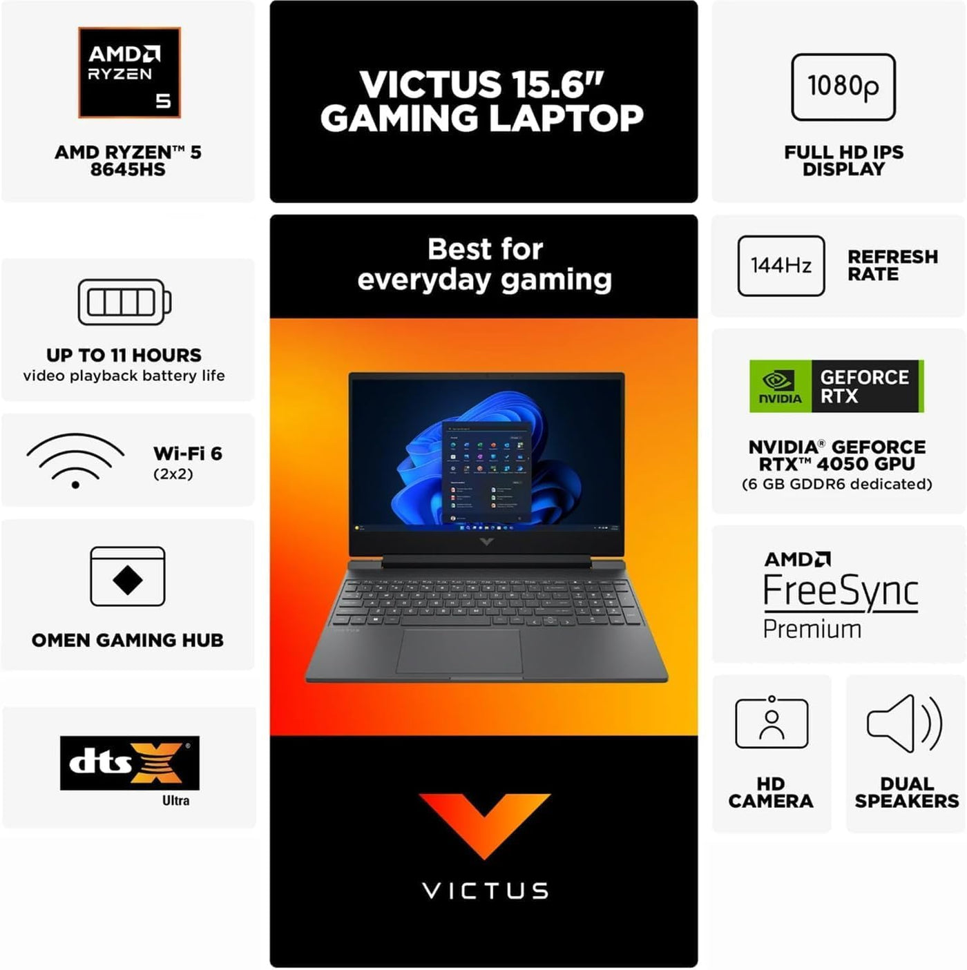 Hp Victus Gaming Laptop, 15.6-Inch Fhd Ips 144Hz, Amd Ryzen 5-8645Hs, Nvidia Geforce Rtx 4050, Backlit, Hd Camera,W/Hdmi Cable (