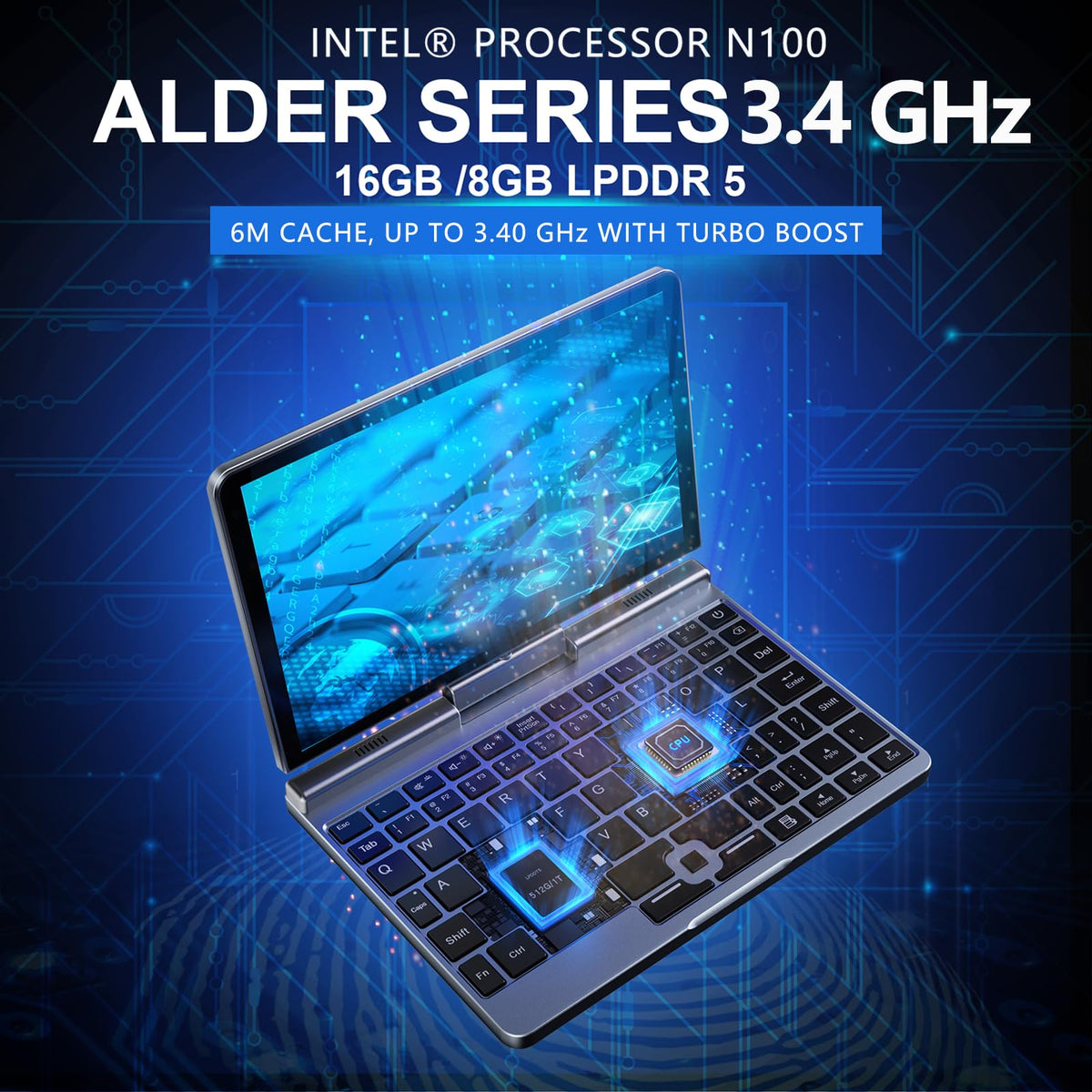 Mini Laptop 8 Inch Hd Touchscreen Portable 2 In 1 Computer, Windows 11 Pro Small Gaming Laptop,Intel N100 12 Gb Lpddr5 1 Tb M.2
