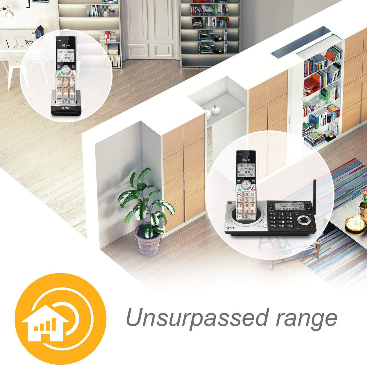 Q: What is the range of the AT&T CL83507 cordless phone system?A: The AT&T CL83507 features long-range coverage, allowing users to make and receive calls from various locations within the home, thanks to its unique antenna design and noise-filtering technology.