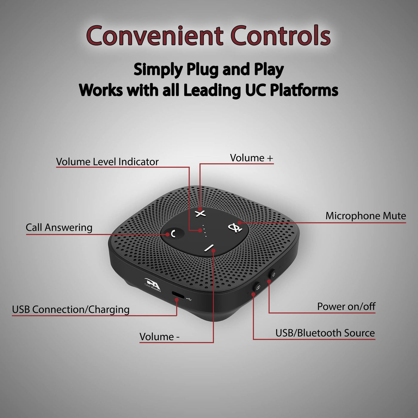 Ca Essential Speakerphone Sp 2000 Usb And Bluetooth Speakerphone, Crystal Clear Sound, 360 Degree Noise Cancelling Microphone
