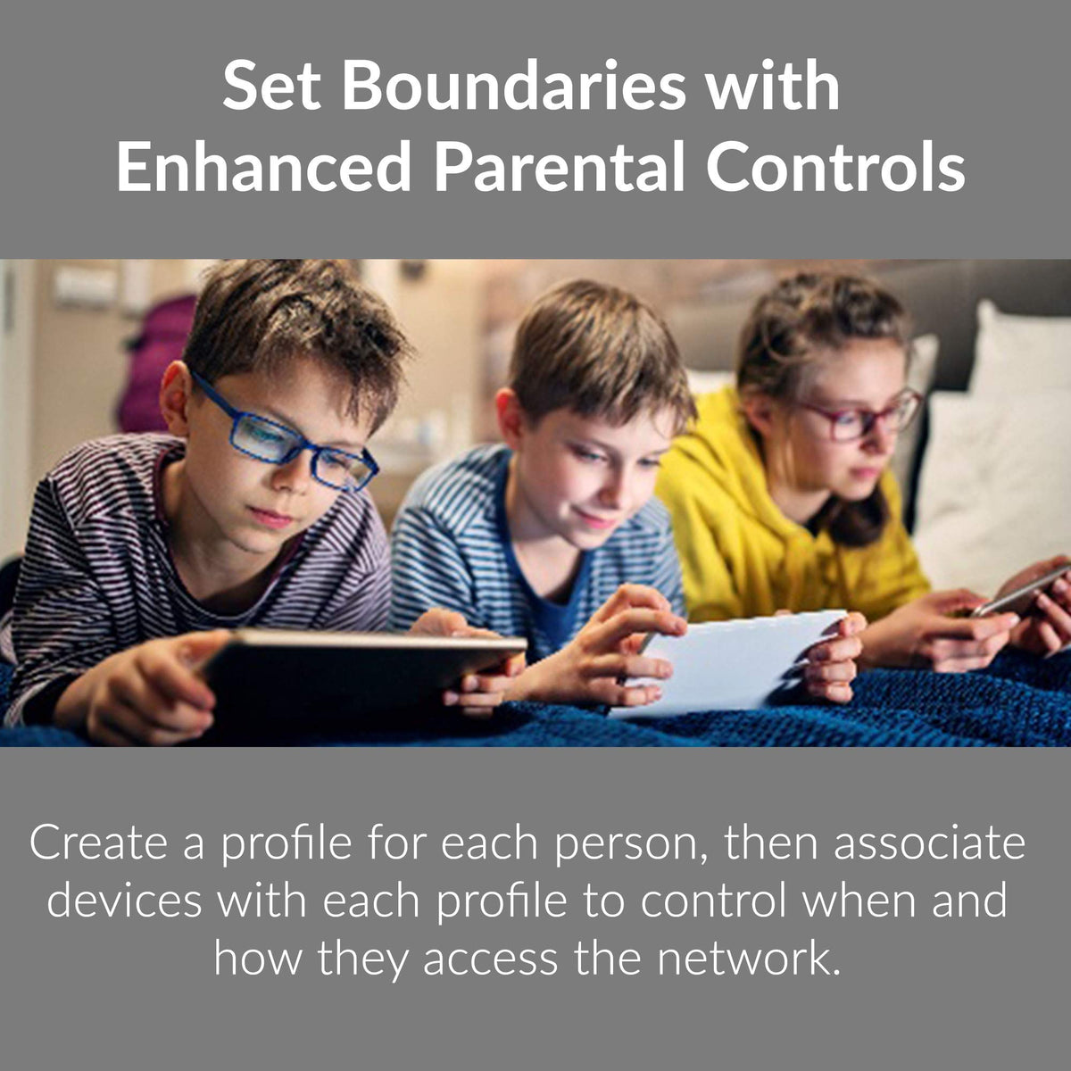 Q: What kind of parental controls does this router offer?A: The router includes profile-based parental controls that allow you to easily manage and monitor your children's online activities, providing a safer internet experience for the whole family.
