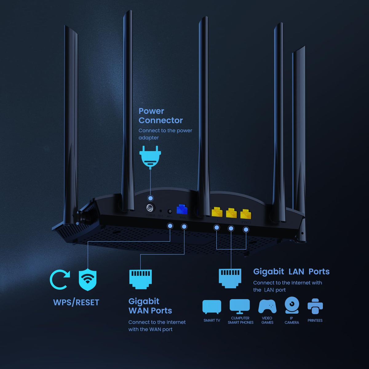 Tenda Wifi 6 Gaming Router, Ax3000 Dual Band Gigabit Wireless Router For Home, Long Range Coverage With 5 * 6Dbi High Gain Anten