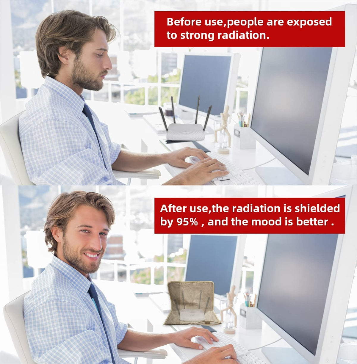 Q: What materials are used in the WiFi Router Cover?A: The WiFi Router Cover is made from a combination of Copper, Nickel, and Polyester Fiber, which is certified to provide high levels of radiation protection.