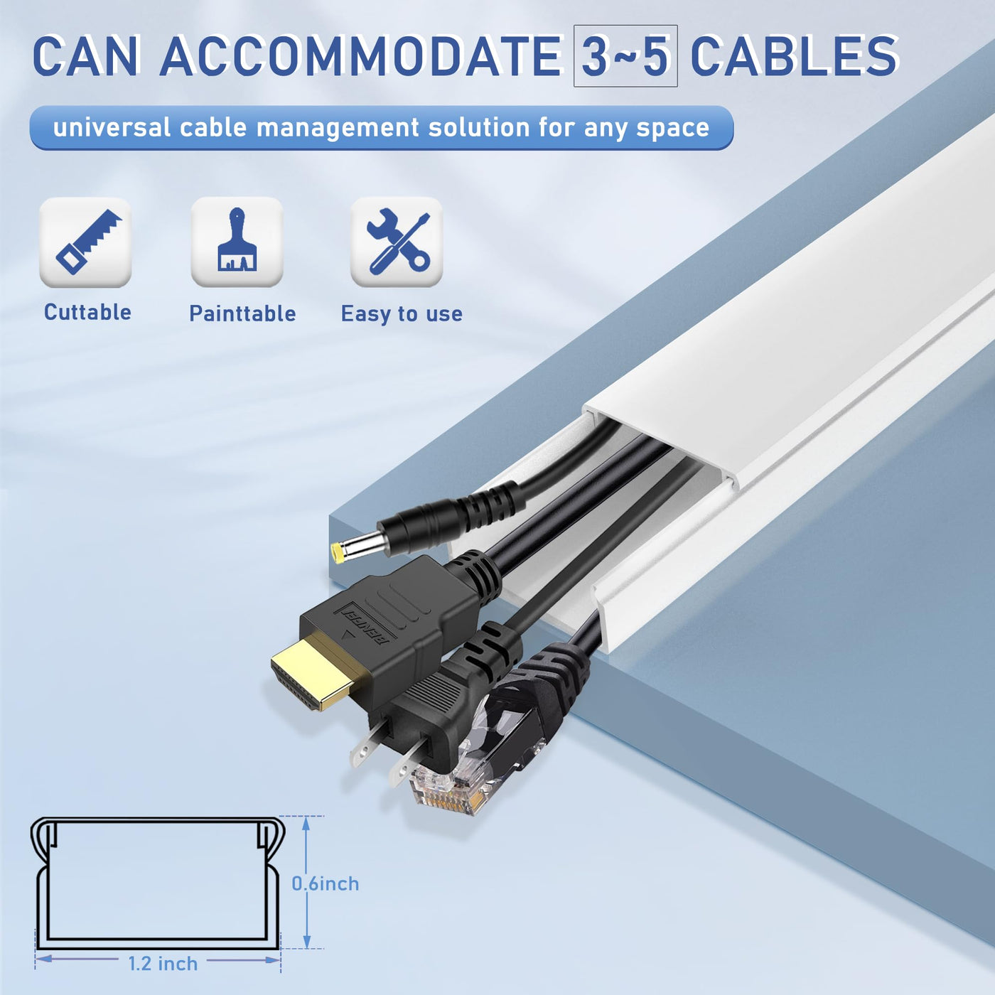 Cable Cover Wall Cord Hiders For Tv On Wall, 157 Inches Cable Cover Channel, White