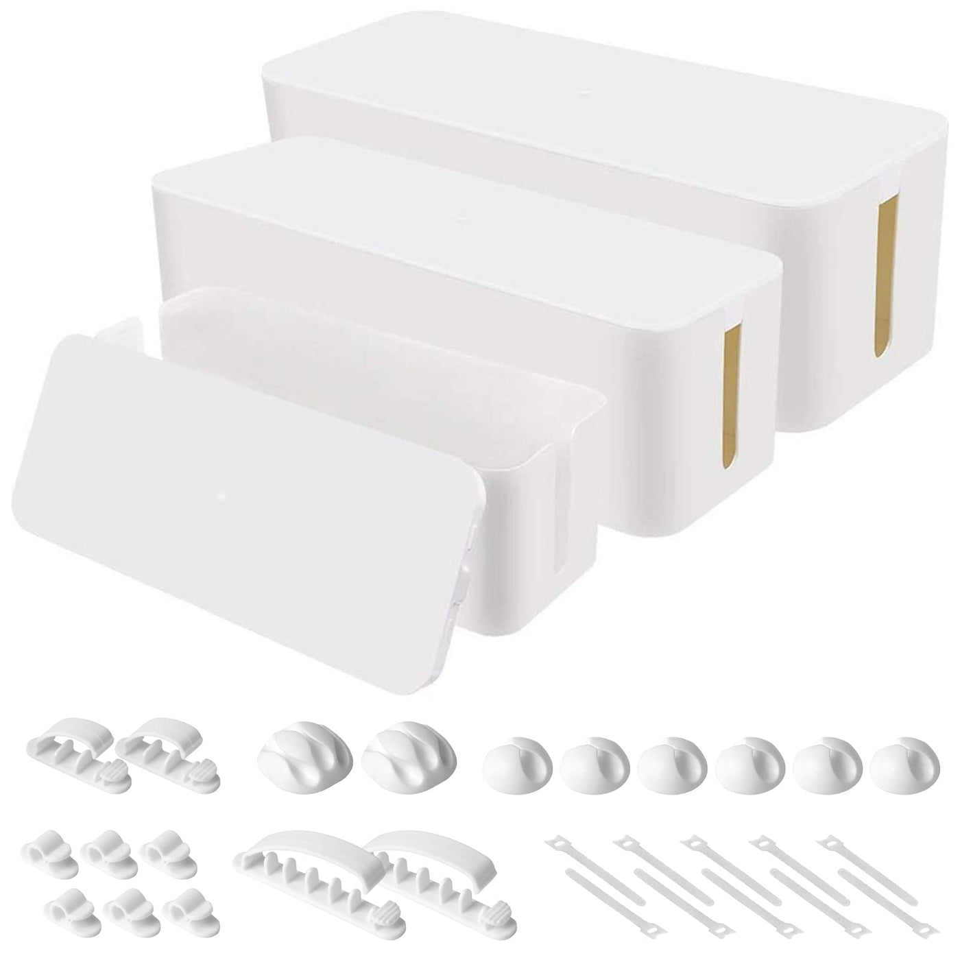 Chouky Cable Organizer Box Set Of Three, Power Cover Cord Holder Surge Protector For Desk (White)