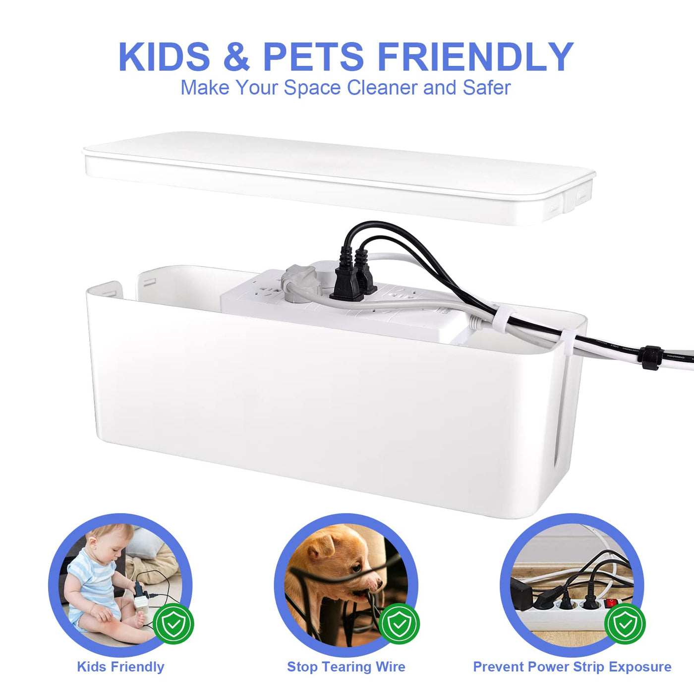 Q: Are the materials used in the cable organizer safe for children and pets?A: Yes, the Chouky Cable Organizer Box is designed with a clasp to protect kids and pets from accessing power strips and electrical equipment. Additionally, the materials used are electrically insulated and impact-resistant, ensuring safety in your home.