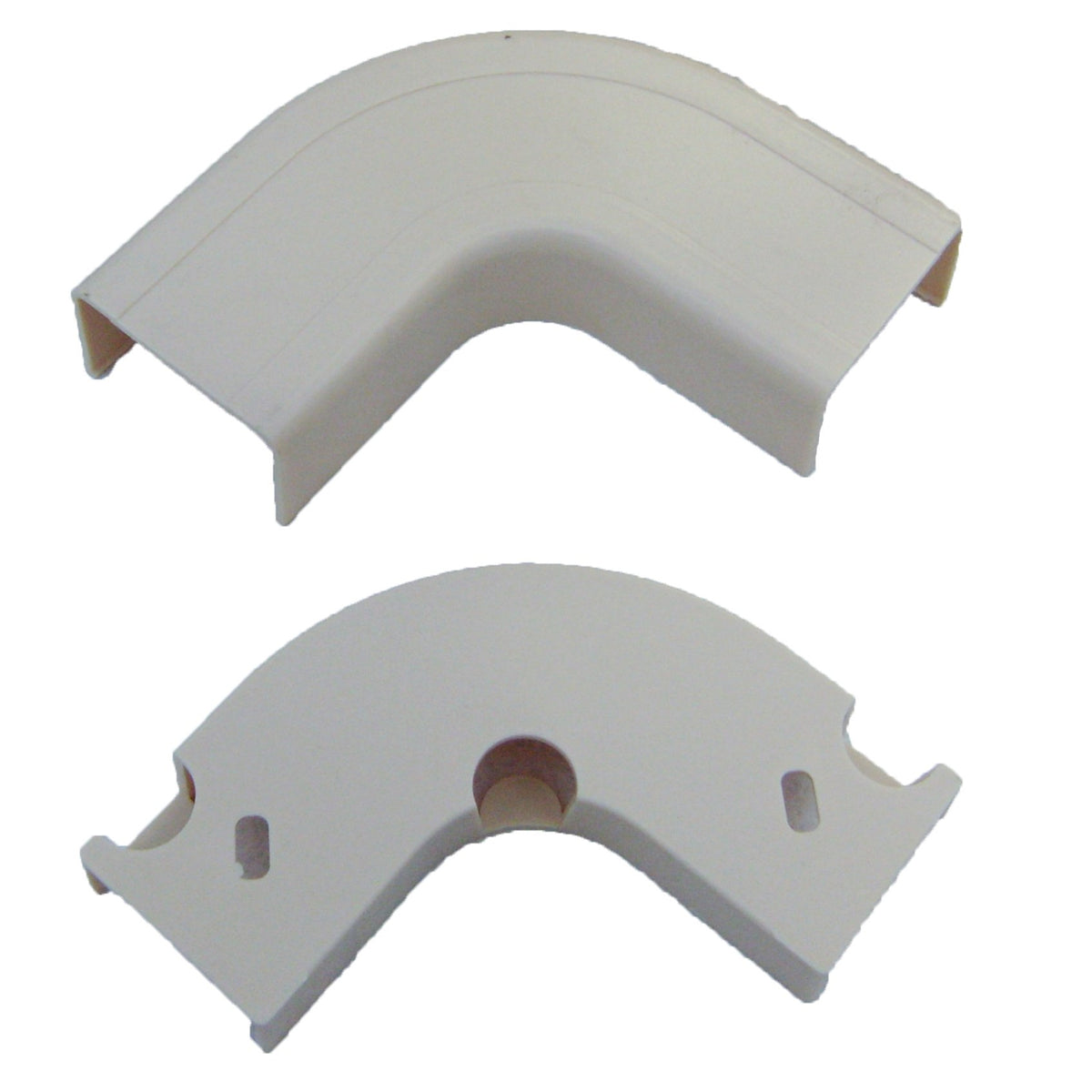 This White 1.25 Inch Raceway Piece Is A Flat Elbow (90 Degree), It Is Designed To Lay Flat On The Ground And Bridge Two Straight 1.25 Inch Raceway Runs At A Corner. Use Surface Mount Cable Raceways To Protect And Tidy Up Cable Runs Around The Home Or Office Where Running Through Walls Is Not Possible Or Practical. These Raceways Are Useful For Nearly Any Type Of Cable From Phone, Network, Usb, Vga, Audio/Video, Speaker And More. Some Sample Applications Would Be: Office Cubicles Where Walls Are Not Available Or The Working Space Can Change Configuration Or In The Existing Home Where One Wants To Install Surround Speakers And Hide/Protect The Speaker Cables/Wires.
