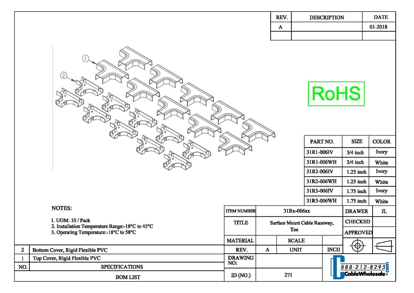This White 1.25 Inch Raceway Piece Serves As A Junction For Three Straight Cable Raceway Runs Coming Together (One Of The Runs Will Be Perpendicular To The Other Two). It Allows The Installer To Connect Three Longer Straight Raceway Sections At A Junction Spot. Use Surface Mount Cable Raceways To Protect And Tidy Up Cable Runs Around The Home Or Office Where Running Through Walls Is Not Possible Or Practical. These Raceways Are Useful For Nearly Any Type Of Cable From Phone, Network, Usb, Vga, Audio/Video, Speaker And More. Some Sample Applications Would Be: Office Cubicles Where Walls Are Not Available Or The Working Space Can Change Configuration Or In The Existing Home Where One Wants To Install Surround Speakers And Hide/Protect The Speaker Cables/Wires.