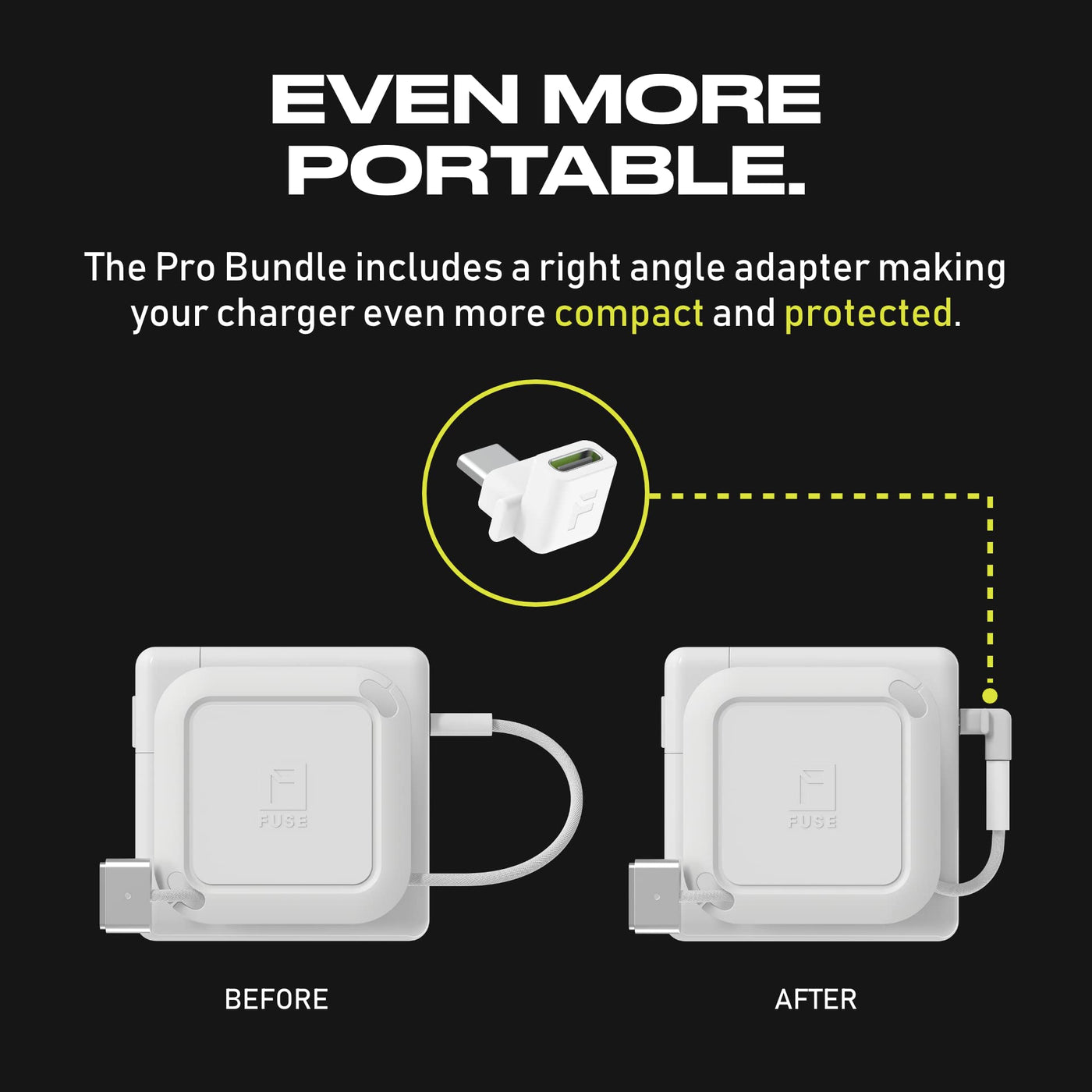 Fuse Reel The Side Kick Collapsible Charger Organizer With Usb-C Right Angle Adapter Compatible With Macbook And Pc Charging Cor
