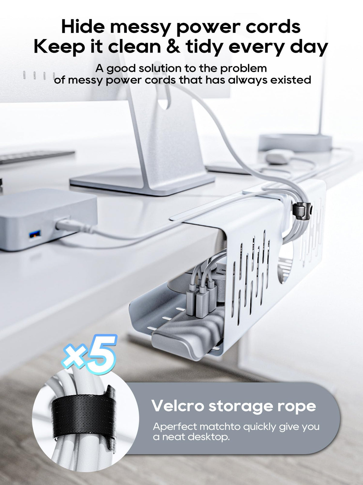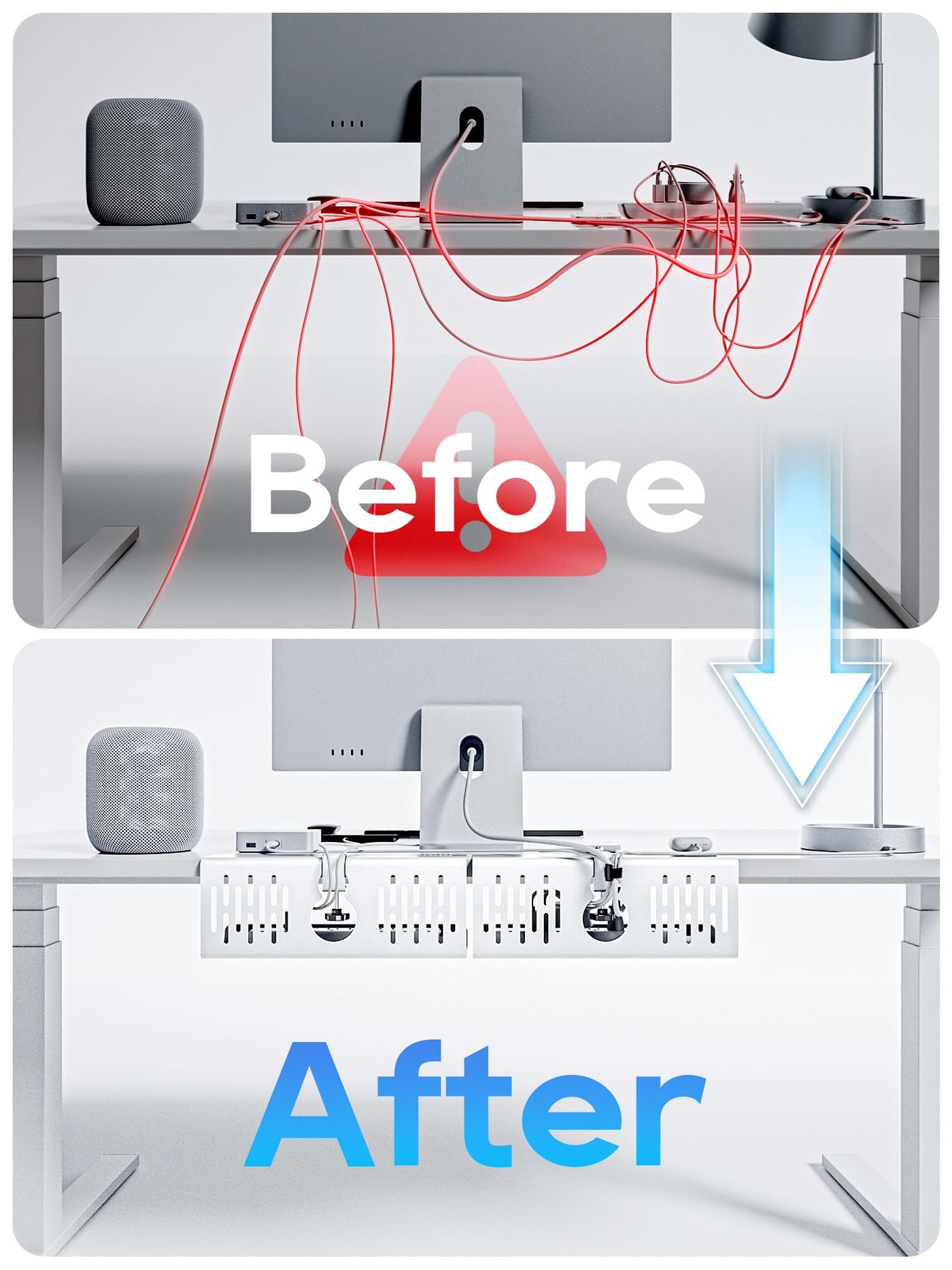 Cable Management Under Desk Tray, Under Desk Cable Organizers For Wire Management. Under Desk Cord Organizer With Clamp Mount System For Wire Management(White Cable Tray