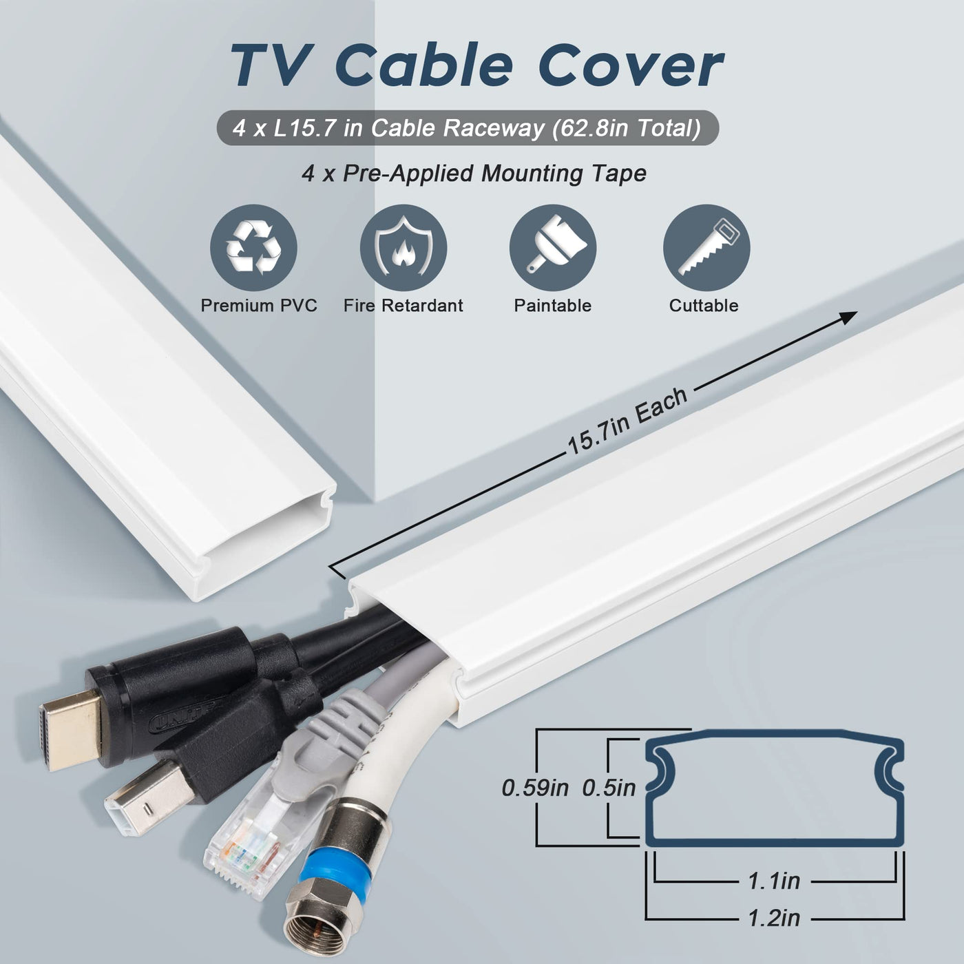 Tv Cable Hider 62.8In Pvc Cord Hider Cable Management Wall, Paintable Cable Concealer For Wall Mounted Tv, Cable Raceway White