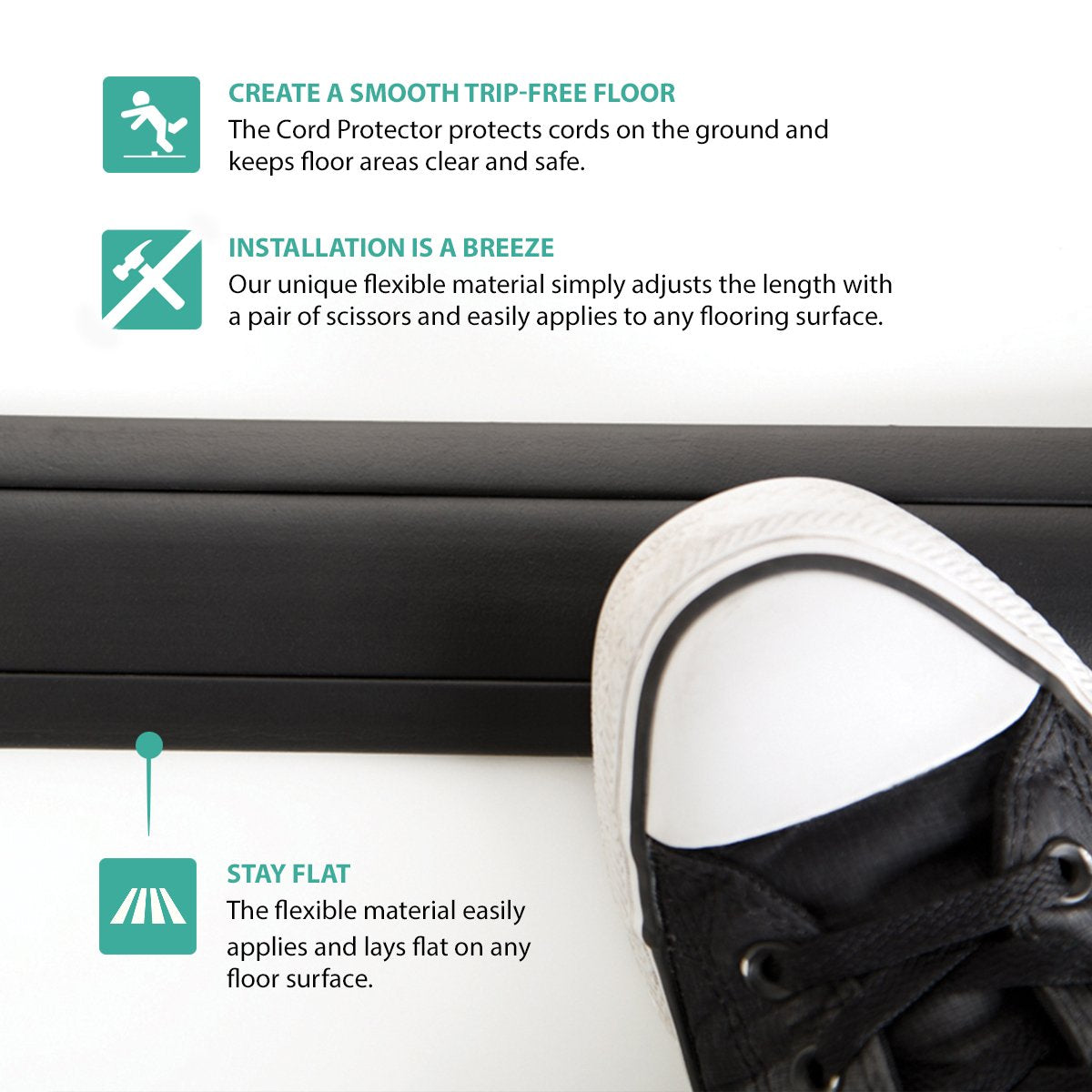 Ut Wire (Tm)'S Cord Protector & Concealer Is A Unique Cord Organization Accessory With New Design And Added Storage Space. The New Top Loading Compartment Design Makes Removing Cords For Any Future Adjustments A Piece Of Cake. Also, The Flexible Material Eliminates The Difficulties Of Similar Products To Lie Flat On Floor Or Cut The Product To Your Desire Length. Content: (1) 5Ft Cord Protector And Double-Sided Adhesive Tapes.