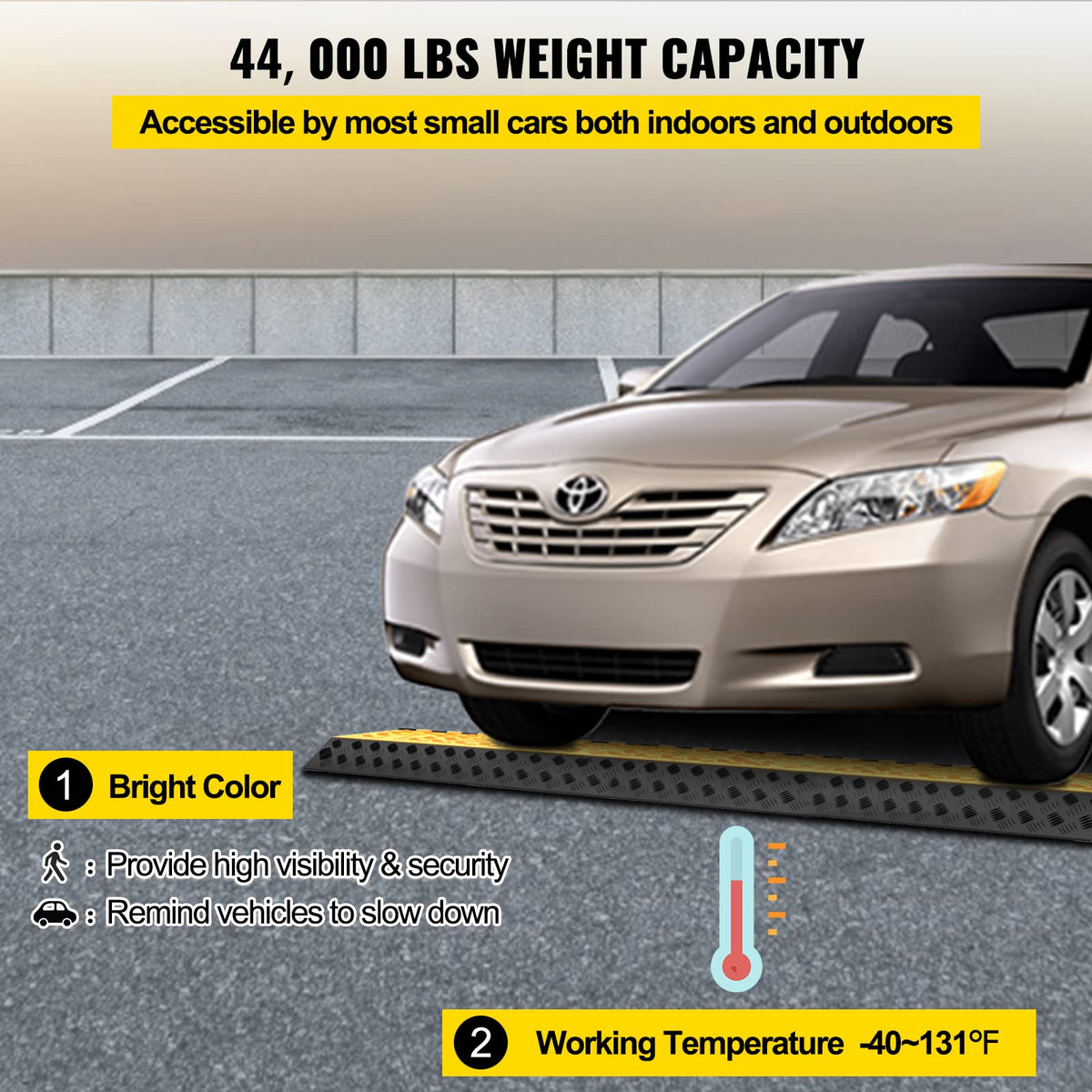 1 Packs 3 Channels: Amount: 1 Pcs; Product Size: 37 L X 20 W X 3 H/ 94.5 X 50 X 8 Cm; Single Channel Size: 2.8 W X 2.4 H/ 7.2 X 6 Cm; 3 Channels Cables Protector Keeps Various Wires From Getting Damaged By Foot Traffic And Vehicles. Whats More, The Speed Bump Is Ideal For Slowing Down The Speed Of Cars Or Trucks To Create A Secure Driving Environment For Roads, Parking Lots, And More. Note: Please Fill The Cable Ramp With Sand Before Use. | Max. 44000 Lbs Capacity: Traditional Black+Yellow Color Provides Greater Visibility At Night And In Low Light Environments. The Cable Protector Ramp Incorporates A Unique Design In Its Appearance To Capture The Attention Of Passer-By And Drivers To Slow Off. 44,000Lbs Load Capacity Ensures That You Can Drive Your Car Over The Ramp Without Affecting The Cables Running Inside. | Premium Slip-Proof Rubber: Our Cable Protector Cover Is Constructed With Industrial-Level Rubber And A Pvc Cover, Water-Proof, Wear-Proof, And Non-Deformed For Long-Lasting Usage. Flip-Open Design Allowing You To Place Or Remove Cables Quickly And Easily. Texture Strips On The Surface For Vehicles To Pass Without Sliding; Bottom Shock Absorption Has Strong Stability To Control Traffic Speed While Not Damaging Cars Or Roads. | Modular Interlocking Connection: Modular Design Allows Multiple Speed Bumps To Be Connected To Cover The Longer Cords. With The Design, You Can Effortlessly Assemble It On The Floor Of Your House Or Even Outdoors. In Addition, This Feature Offers You A Do-It-Yourself Vibe As You Can Either Have A Specialist Connect The Product For You Or Achieve A Sense Of Self-Pride And Go At It Yourself. | Versatile Application: The Cable Ramp Is Perfect For Indoor And Outdoor, Commercial And Domestic, Such As Parking Lots, Warehouses, Concerts, Hotels, Stages, Shopping Malls, Sports Events, Schools, Communities, And Construction Places.