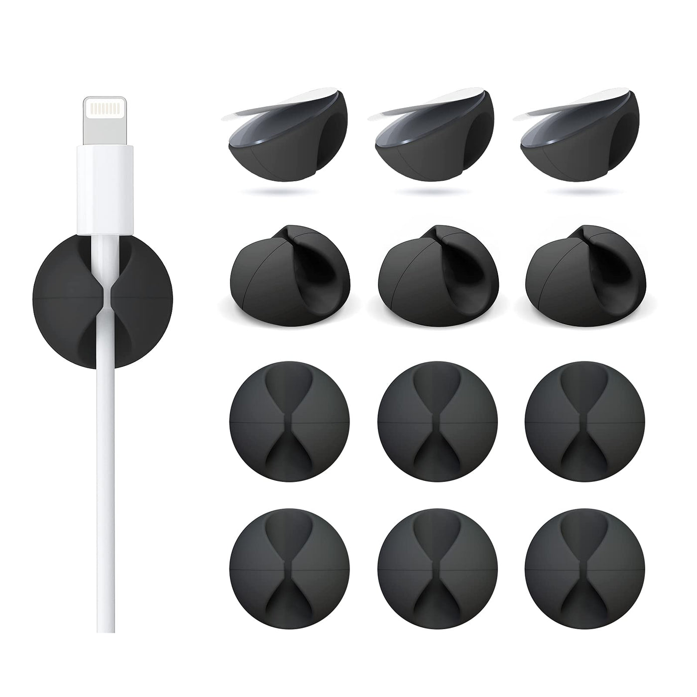 Znben Cord Organizer 12 Pack Designed For A Neat And Clean Desktop! Matte Black, Dirt-Resistant, Suitable For All Home Decoration Styles. The Sticky Pad Of Our Cord Organizer Is Made Of Durable Acrylic, Has A Long Service Life. Convenient For You To Take And Use. Perfect Size Inner Diameter: 0.39In Outer Diameter: 1.18In Color: Black Package Includes: 12 Pack Leave No Trace Our Cord Clips Can Be Reused Without Leaving Any Traces. Will Not Cause Any Damage To The Desk Or Car. The Upgraded Design Is More Intimate. Suitable For Summarizing Wired Headset Cables, Phone Charging Cables, Power Cables, Mouse And Keyboard Cables, Ethernet Cables Ect.