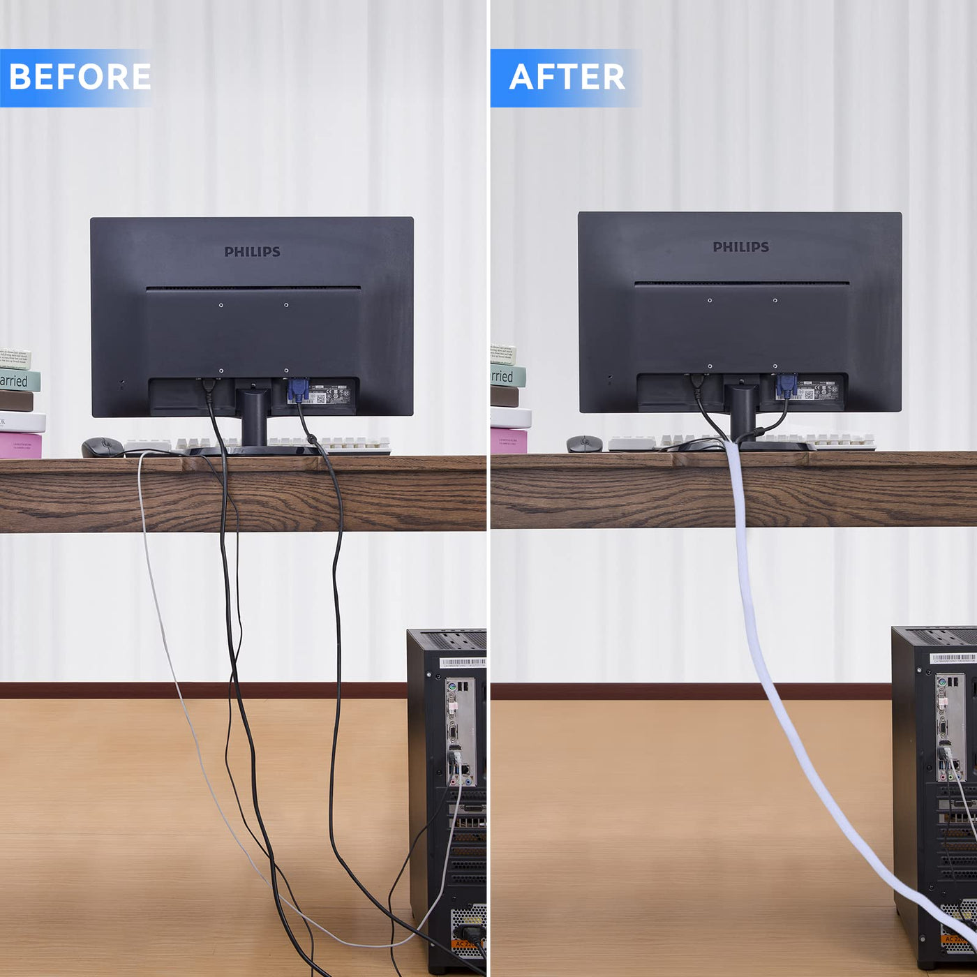 White Cable Sleeve Cable Organizer For Desk Pc Tv Computer, Wire Protector Cable Wrap Cover, Cord Management For Home Office