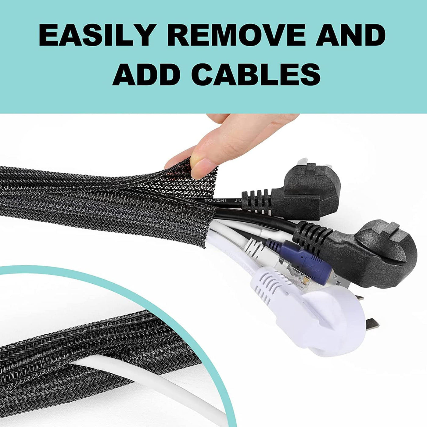 Agptek Cable Sleeve Cover, 2Pack 5Ft 1.8 Inch Cord Management Wire Organizer Under Desk, Home Office Computer Wire Cover Hider