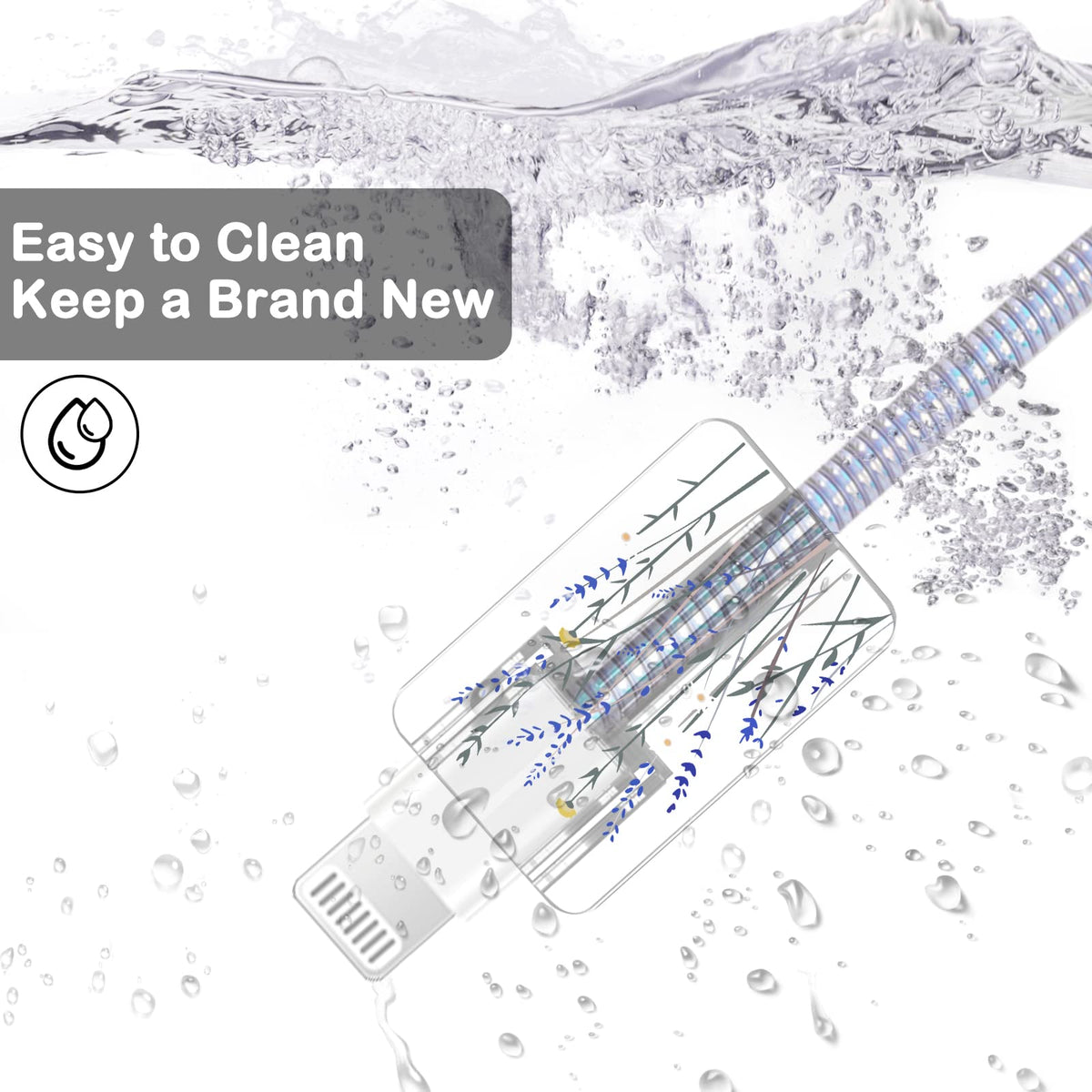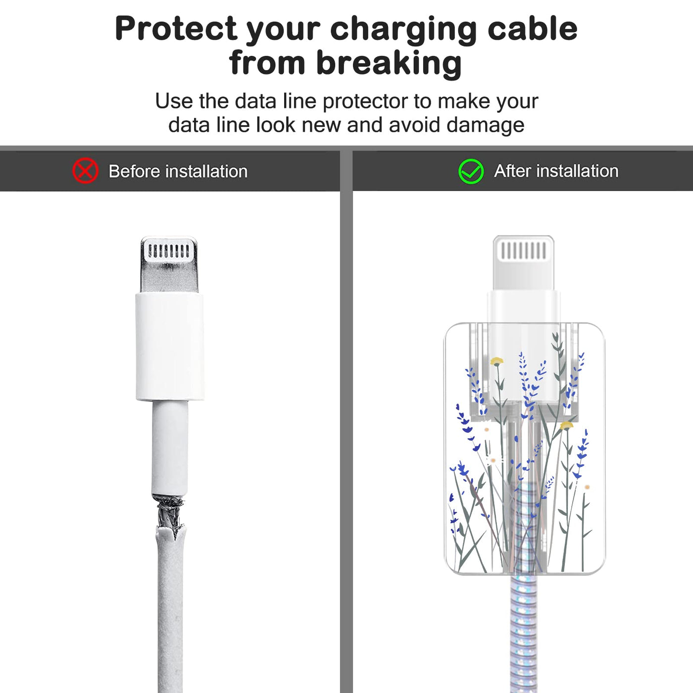 Cute Flower Diy Protectors Cable Protector For Iphone Charger,Kawaii Purple Bouquet Pattern,Data Cable Charger Data Line Earphon