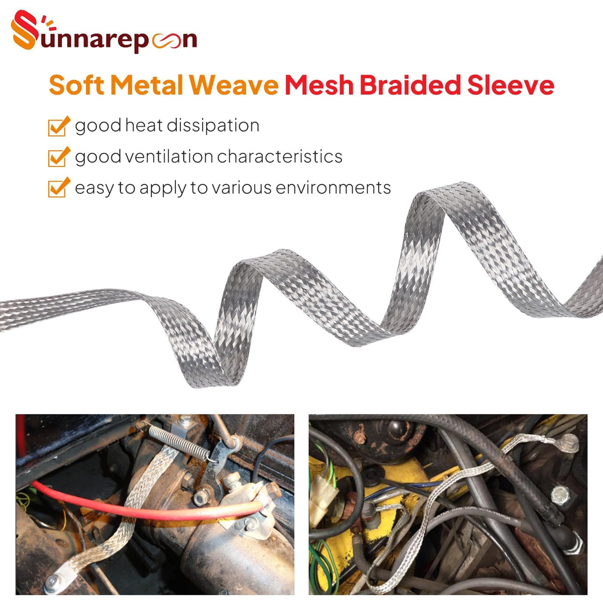Our braided metal sleeves feature a flexible and expandable design that allows for easy installation and adaptability. The multi-stranded monofilament weaving creates a fine density, offering strong tensile strength while minimizing electrical noise that can interfere with performance. This makes the SUNNAREPOON braided sleeve an essential component for maintaining the integrity of your electrical connections.