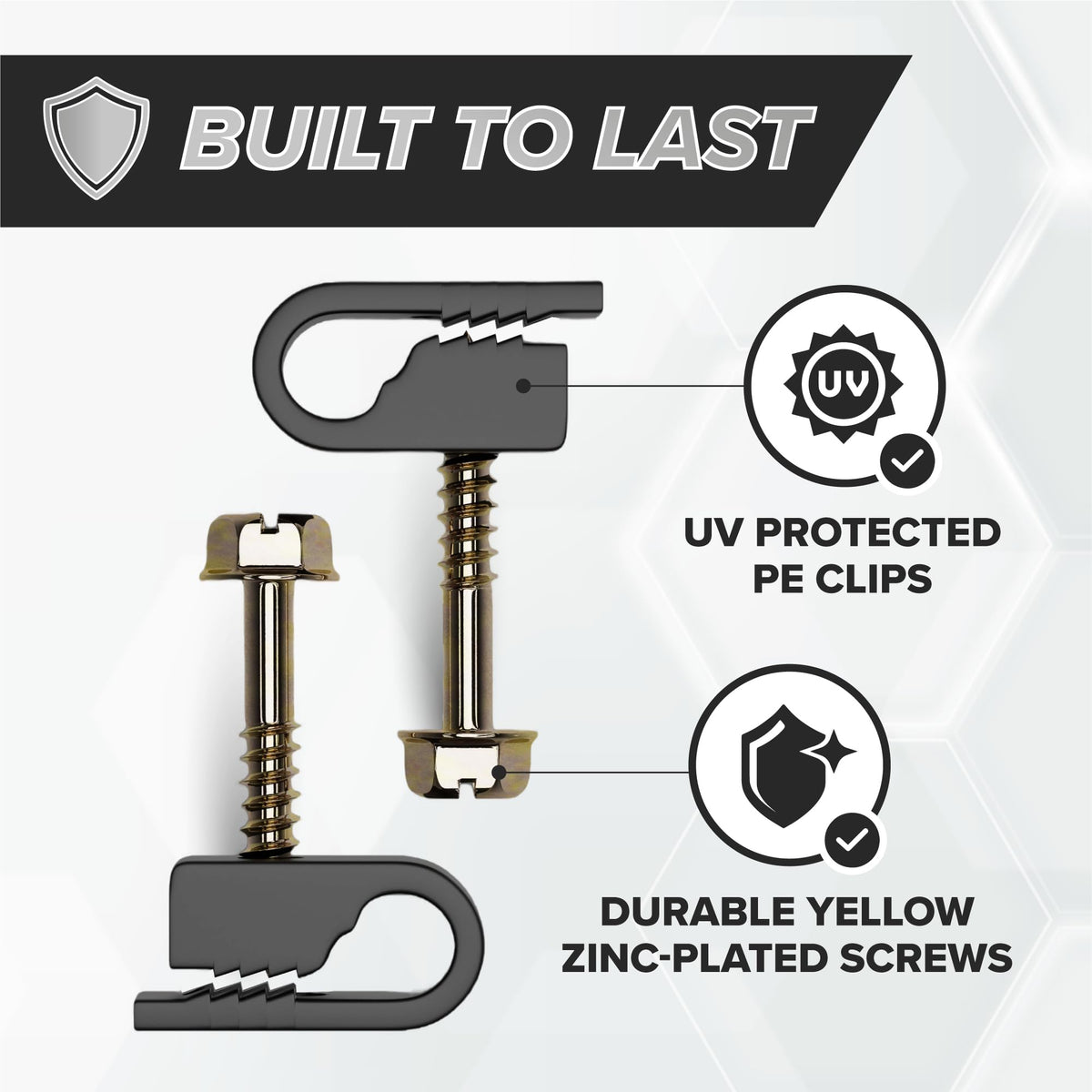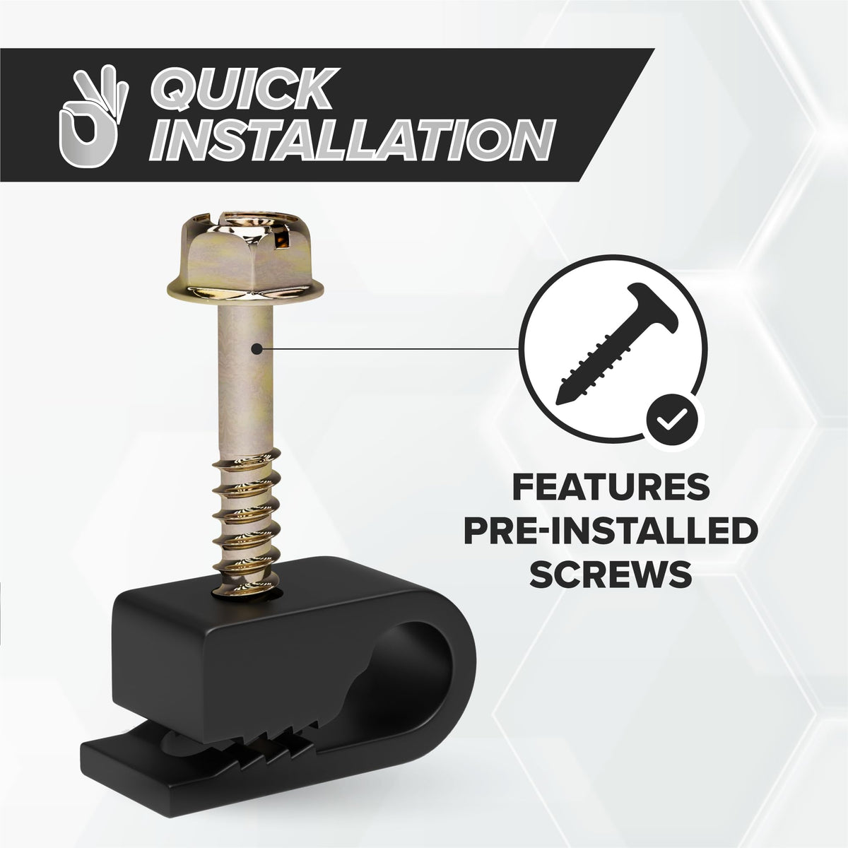 The Cimple Co Single Coaxial Cable Clips, Cat6, Electrical Wire Cable Clip, 1/4 In (6 Mm) Screw Clip And Fastener, Black (10 P