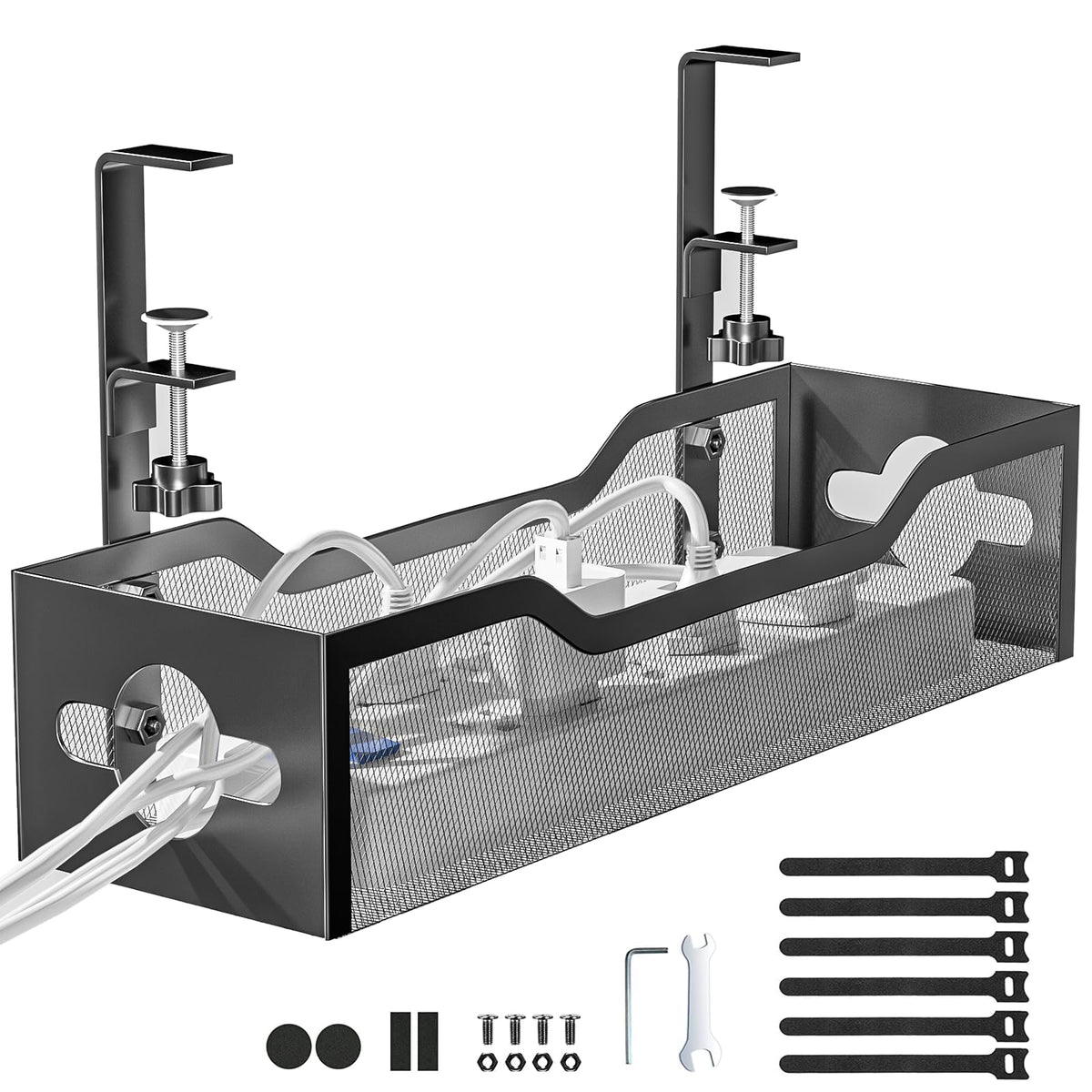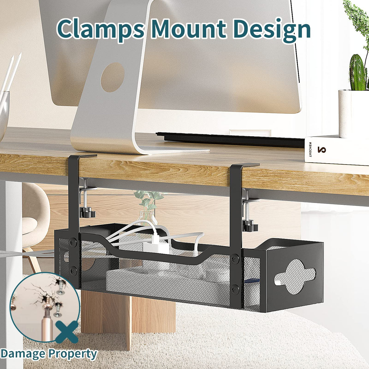Under Desk Cable Management Tray Black, Litwaro Cable Management Under Desk No Drill, Desk Cable Organizer With Clamp For Desk C
