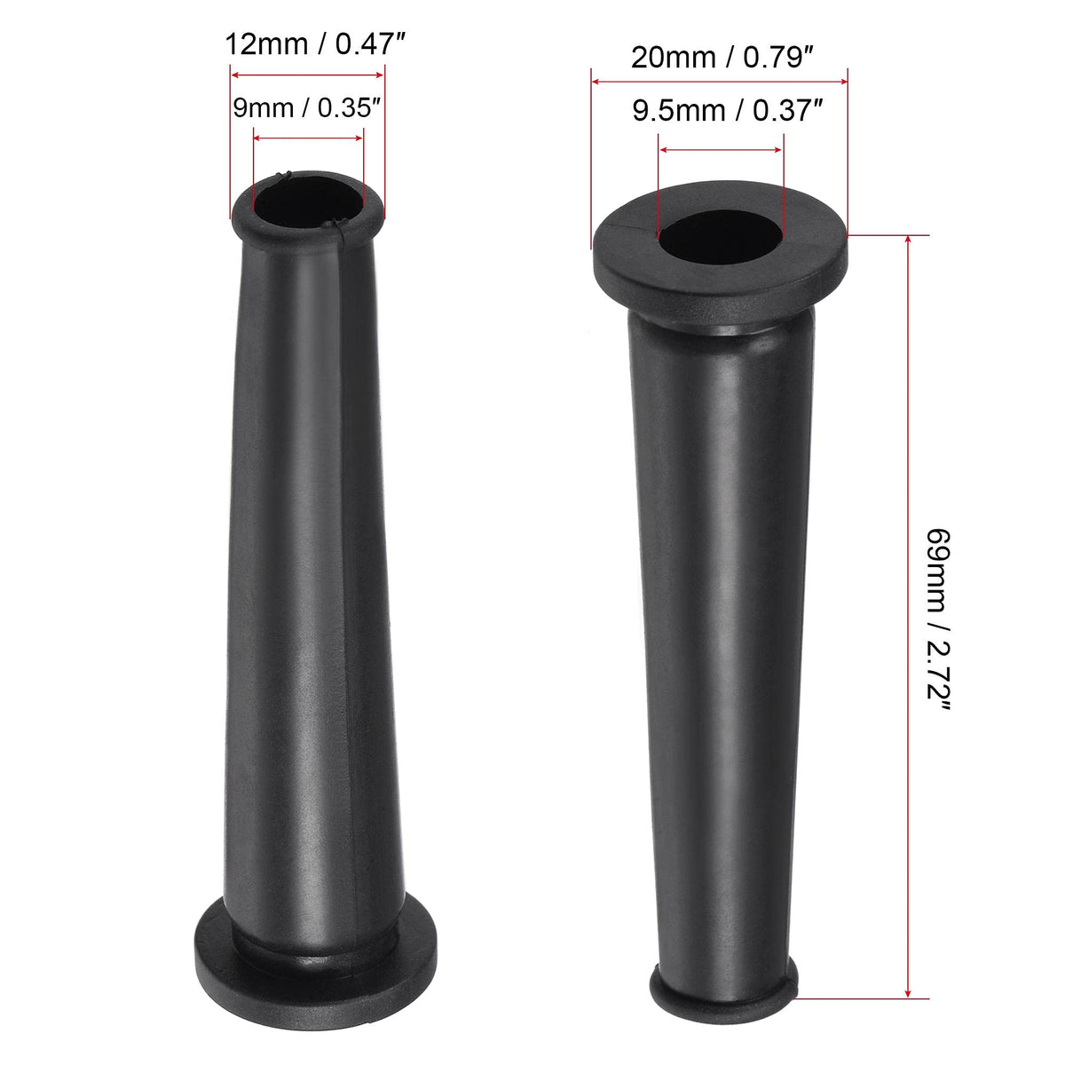 Description:The Protector Cable Sleeve Hose Is Used To Protect The Cable From Bending. Prevent The End Of The Power Cord From Being Broken Or Twisted By Rubbing Against The Machine.Install The Protective Wire Cover At The Entrance And Exit Of The Cable And The Machine Casing To Be Protected. Choosing An Appropriate Size Cord Boot Can Better Protect The Cable.Mainly Used In Power Tools, Cutting Machine, Electric Drill Cable Protection, Etc.Specifications:Total Length: 69Mm/2.72-Inchmounting Diameter: 13Mm/0.51-Inchflange Inner Diameter: 9.5Mm/0.37-Inchflange Outer Diameter: 20Mm/0.79-Inchflange Thickness: 2.8Mm/0.11-Inchlittle End Inner Diameter : 9Mm/0.35-Inchlittle End Outer Diameter: 12Mm/0.47-Inchlittle End Thickness:1.8Mm/0.07-Inchpackage Content:10 Pcs X Cord Boot