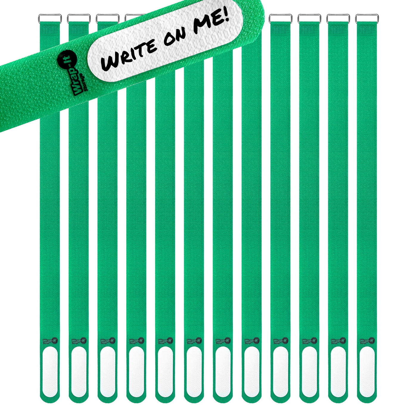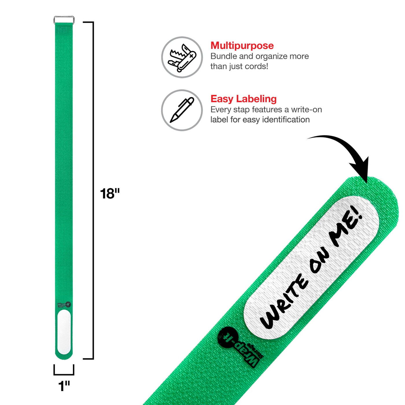 Wrap It Storage Cinch Straps, 18'' 12 Pack (Green), Features Buckle And Write On Label For Easy Cord Identification And Cable Ma